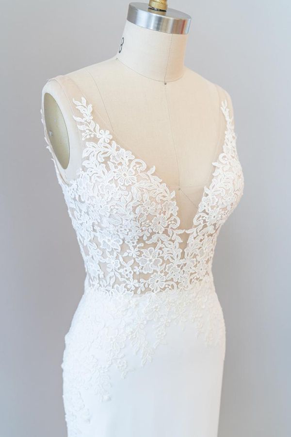 Elegant Long Mermaid V-neck Lace Backless Wedding Dress