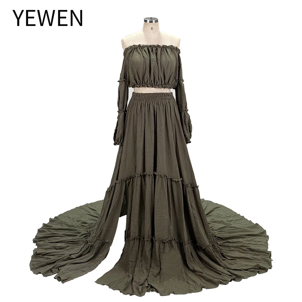 Elegant Off The Shoulder Maternity Dresses for Photo Shoot Long Elastic Waist Boho Maxi Dress Photography Dress SY220912