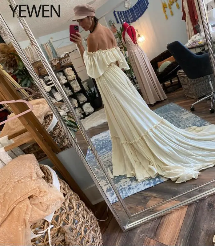 Revel in the pure sophistication of this elegant off the shoulder evening gown, a piece that marries timeless style with effortless elegance. This enchanting off-the-shoulder dress is a vision in ivory, designed to make you the belle of any ball. The gown's adjustable waist cinches to celebrate your form, ensuring a flattering fit for every figure. Crafted from luxurious, soft fabric that cascades into a full, sweeping skirt with a romantic train, this dress promises to make a grand entrance and leave a lasting impression. Perfect for elegant photo shoots, sophisticated parties, or as a bridesmaid's attire, it exudes grace and poise with every twirl. Elevate your evening wear collection with this versatile and stunning gown, tailored to make your every moment feel like a celebration.