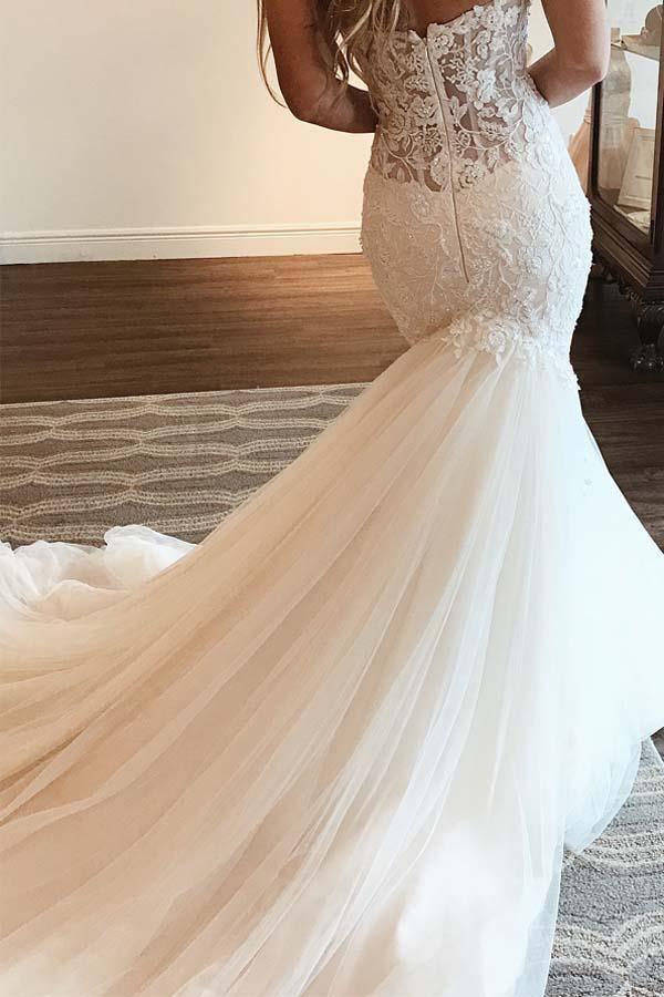 Elegant Sweetheart Mermaid Lace Long Wedding Dress With Beading WD356