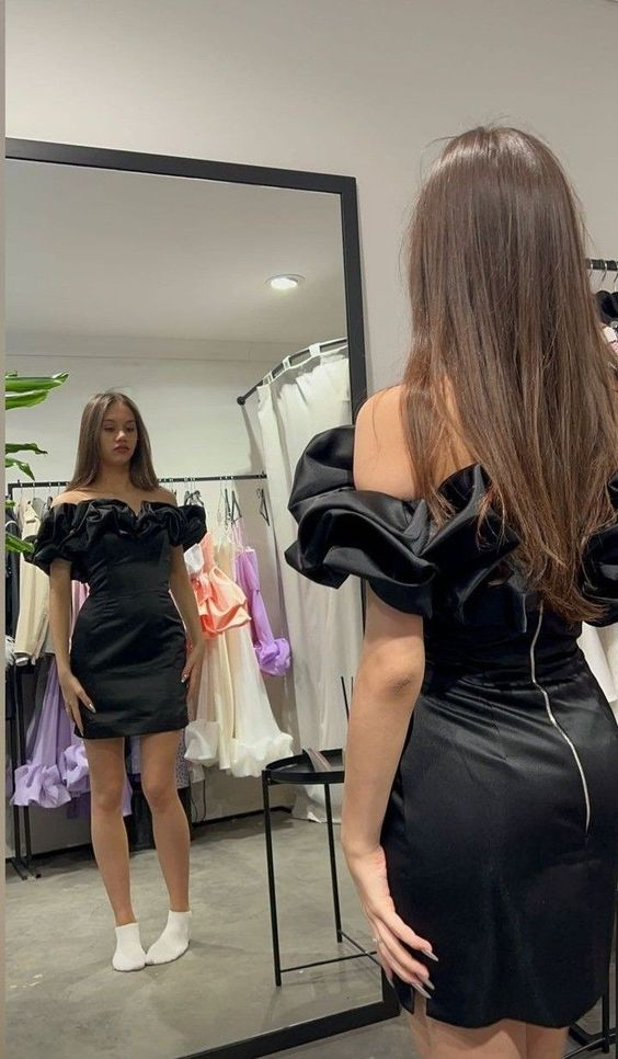 Fashion Black Satin Ruffle Bodycon Dress Homecoming Dress Y6253