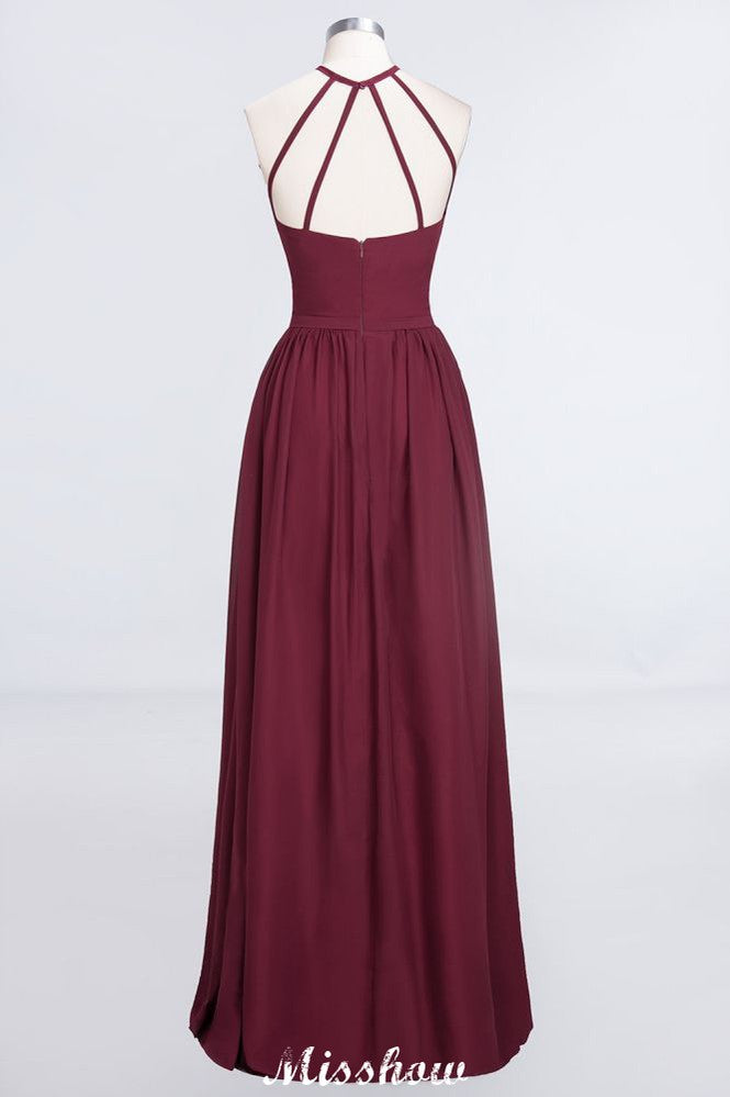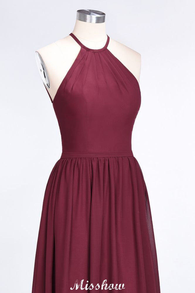 Halter Sleeveless Floor-Length Bridesmaid Dress with Ruffles