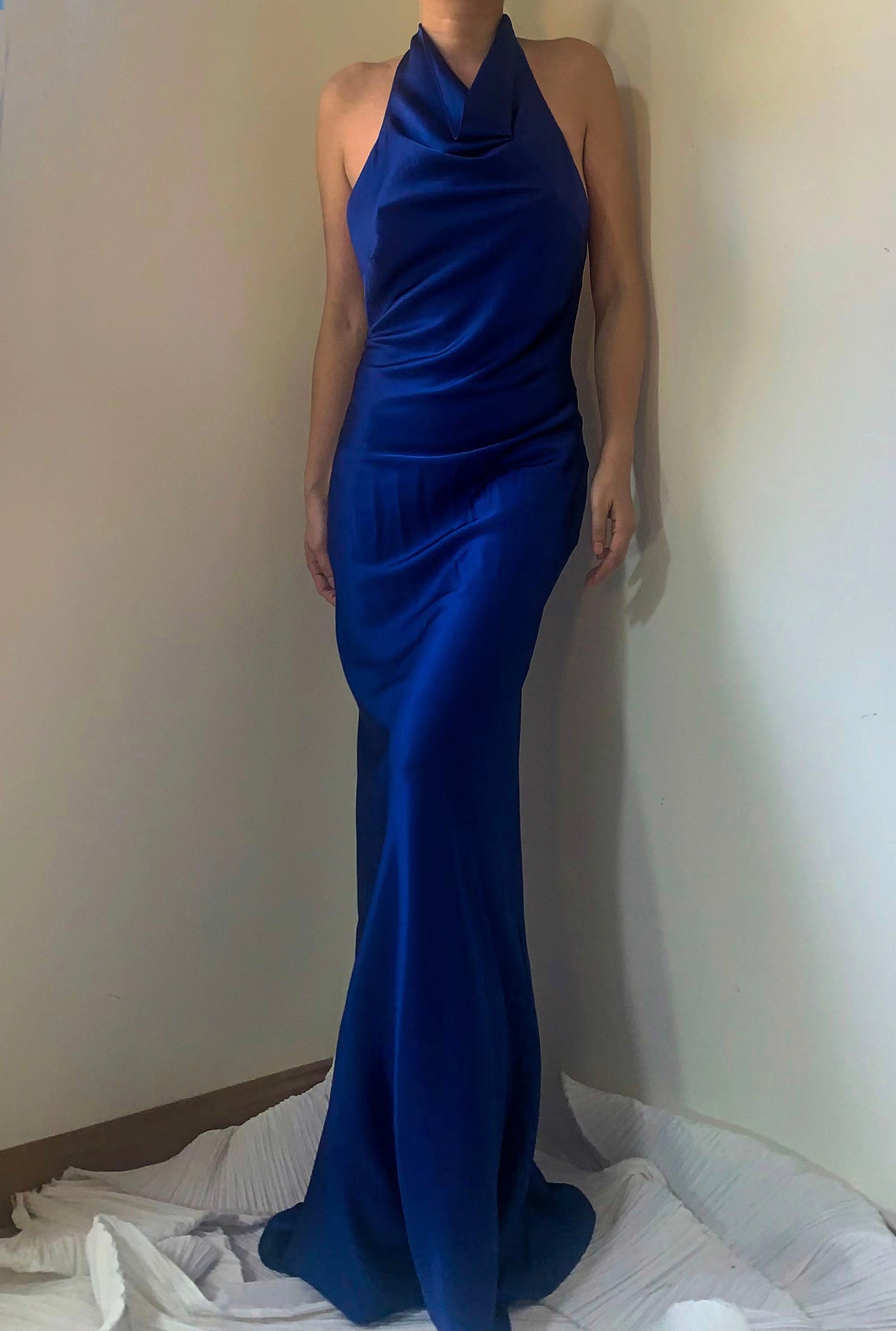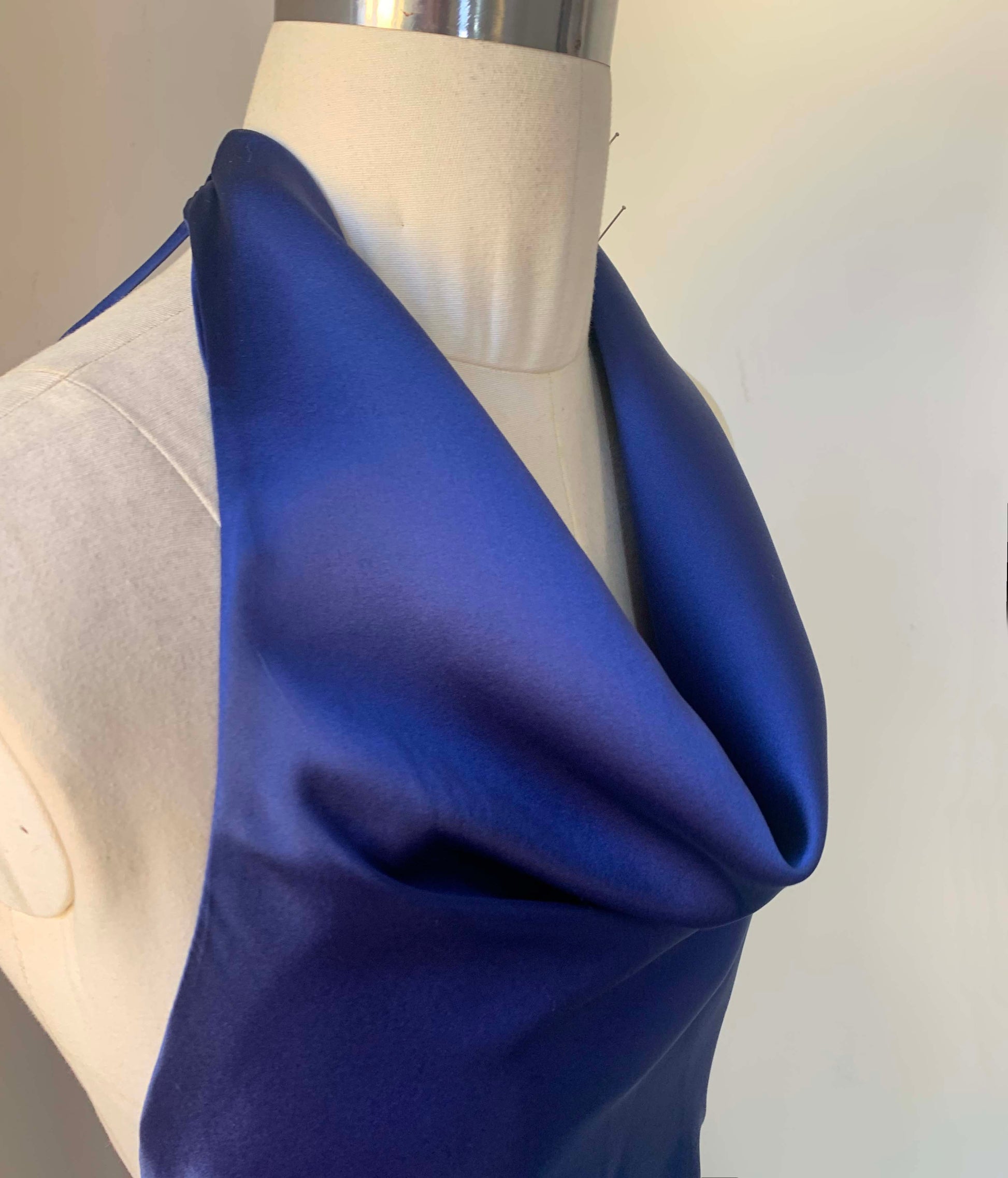 Hold the measuring tape at your hollow while a friend pulls it down to the length you want your dress.