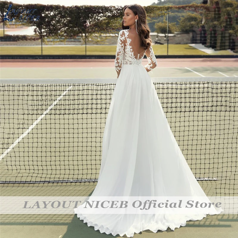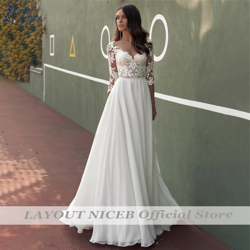 Lace Wedding Dresses Women Chiffon Boho Appliques Bridal Gowns Half Sleeve Beach Vestidos De Novia Casamento Civil