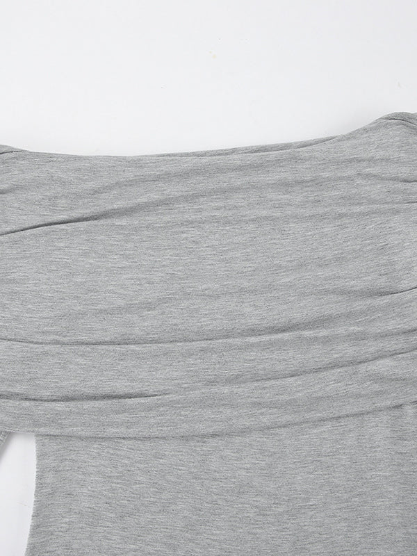 Long Sleeves Skinny Pleated Solid Color Split-Joint Off-The-Shoulder Evening Dresses Maxi Dresses