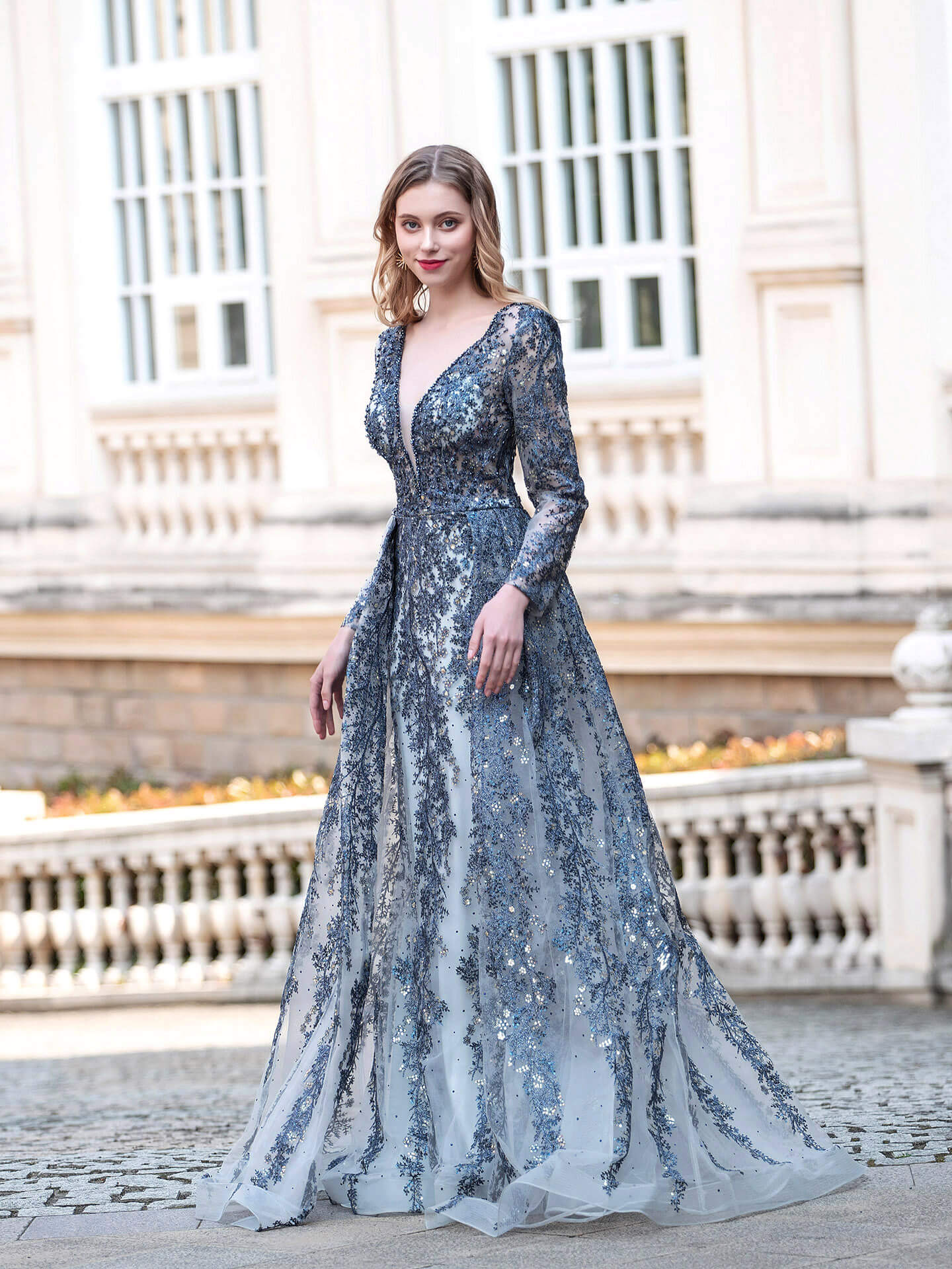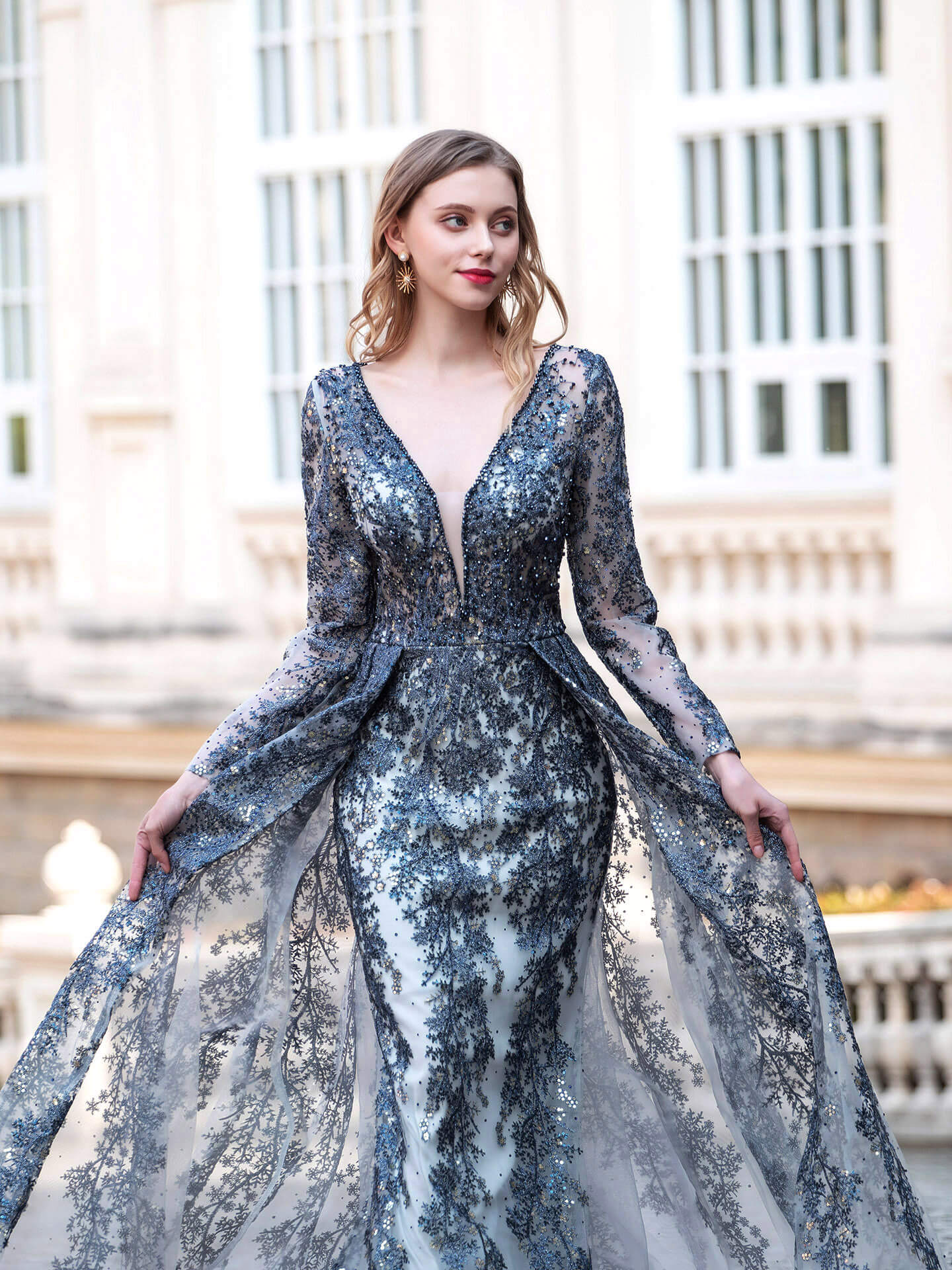 Mermaid / Trumpet V-neck Fashion Formal Evening Dresses Long Sleeve Floor Length Prom Dresses