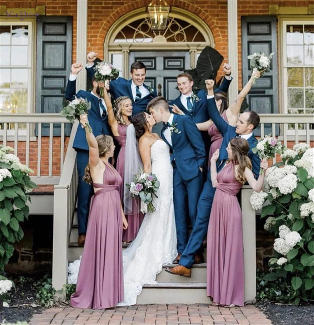 Navy Infinity Dress Convertible Sexy Backless Evening Dresses Women Multiway Milk Silk Wedding Evening Party Gowns Robes 2025