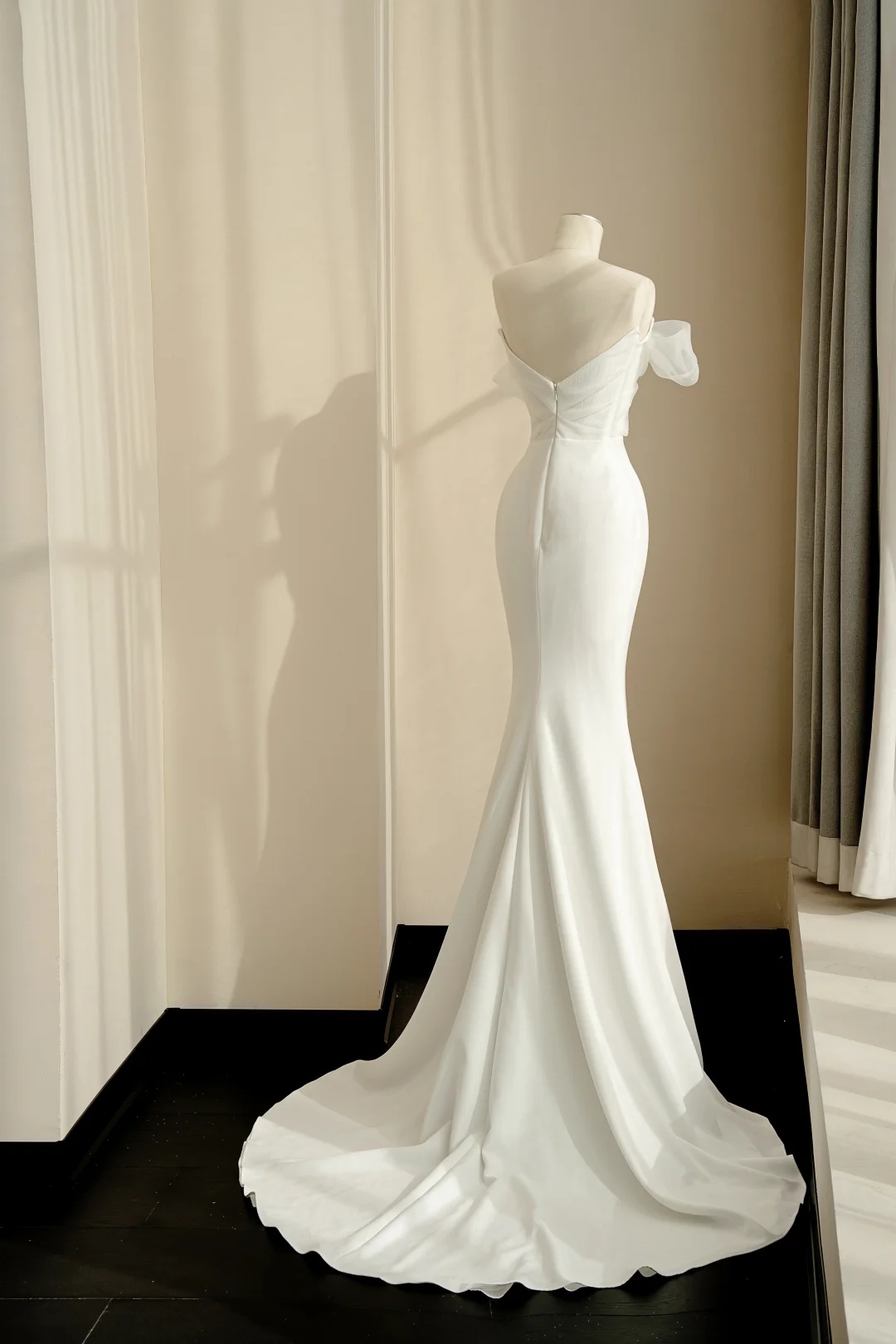 Pretty White Strapless Satin Organza Bow Mermaid Evening Dress,Formal Prom Dress Wedding Dress Y8679