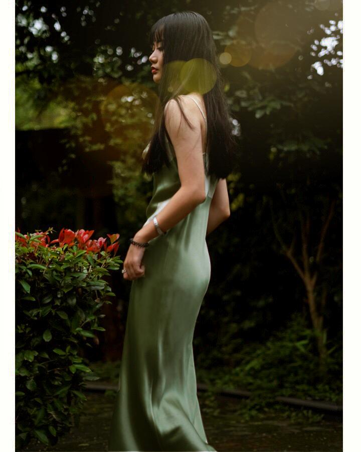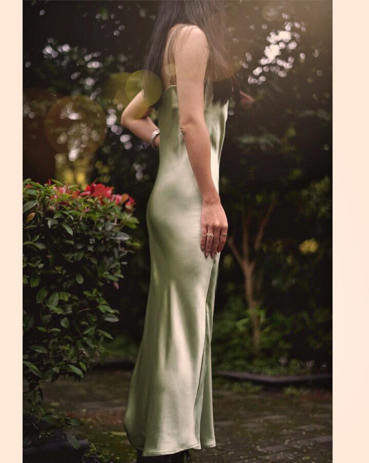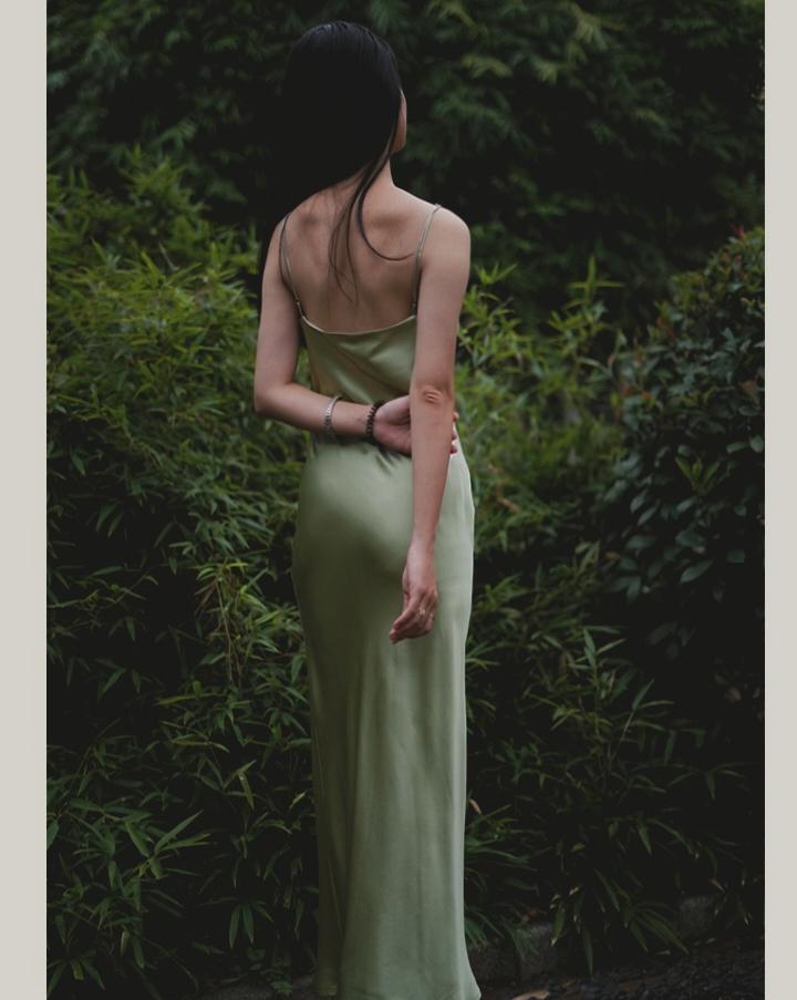 /Sage Green Mulberry Silk Cowl Neck Slip Dress by alashanghai