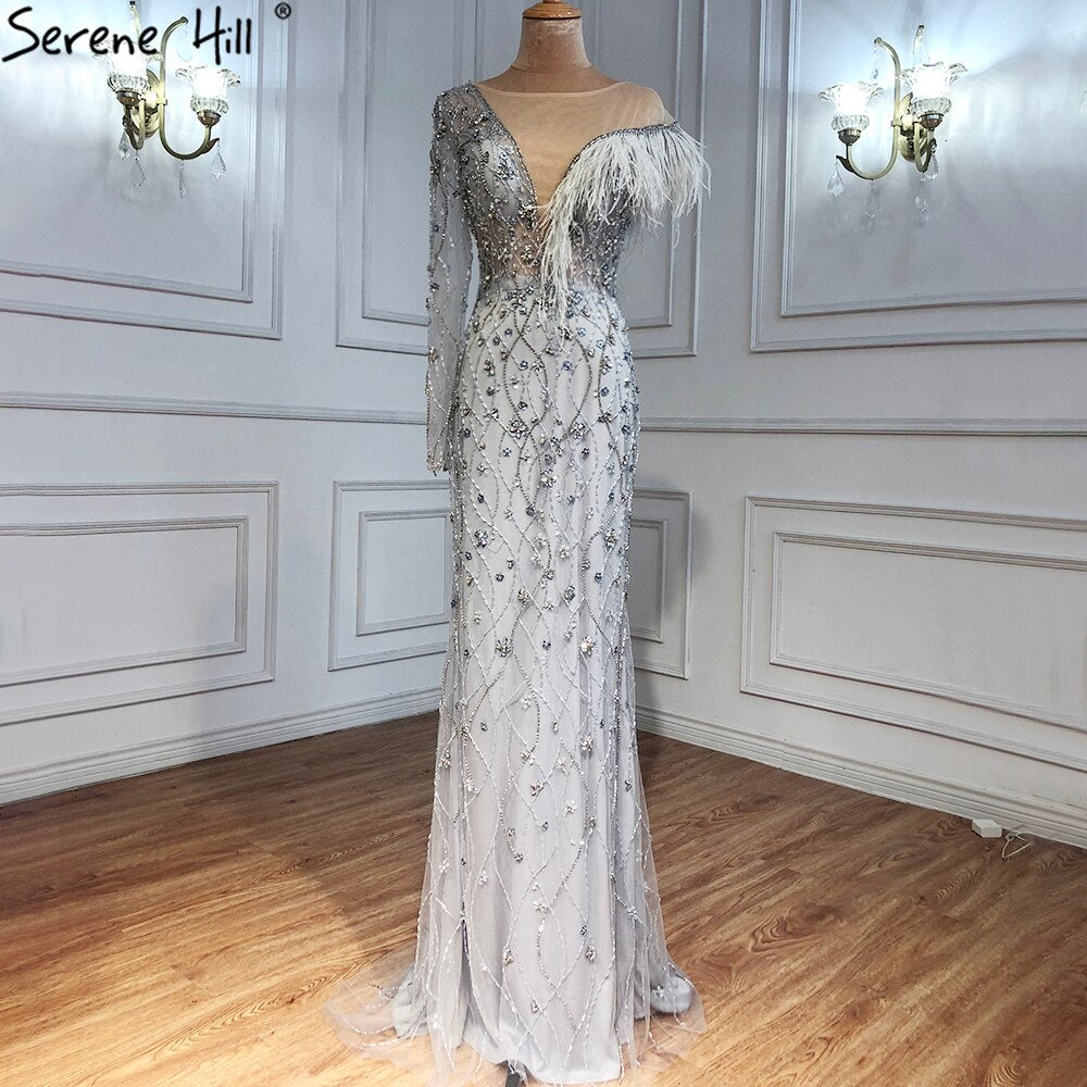 Grey Mermaid Luxury Evening Dresses Gowns 2025 Feather Beaded Elegant For Women Party LA71174