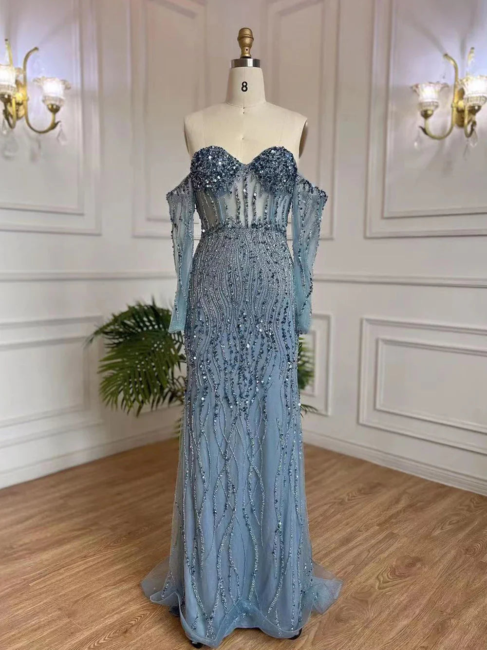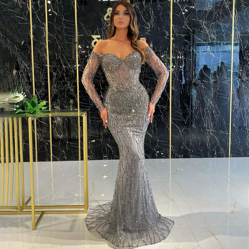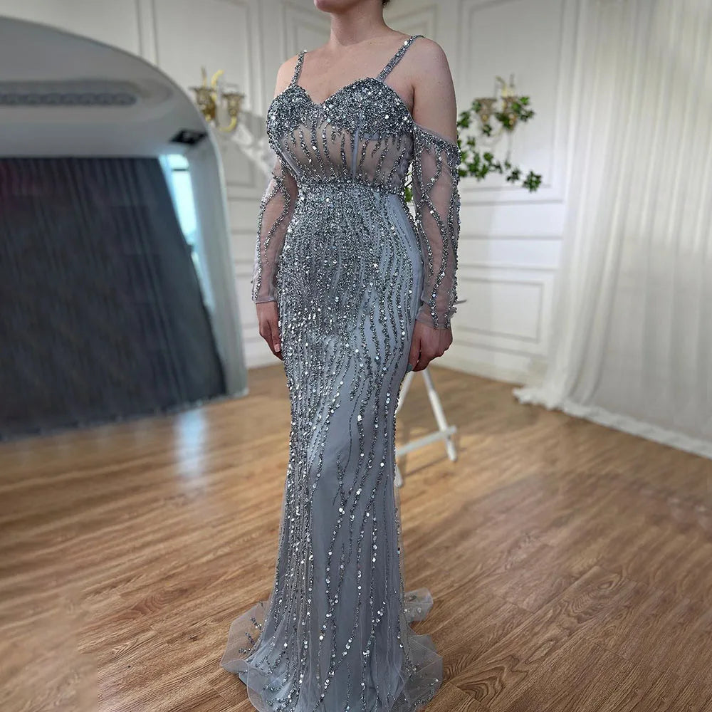 Grey Mermaid Spaghetti Strap Luxury Beaded Elegant Evening Dresses Gowns 2025 For Woman Wedding Party LA71650