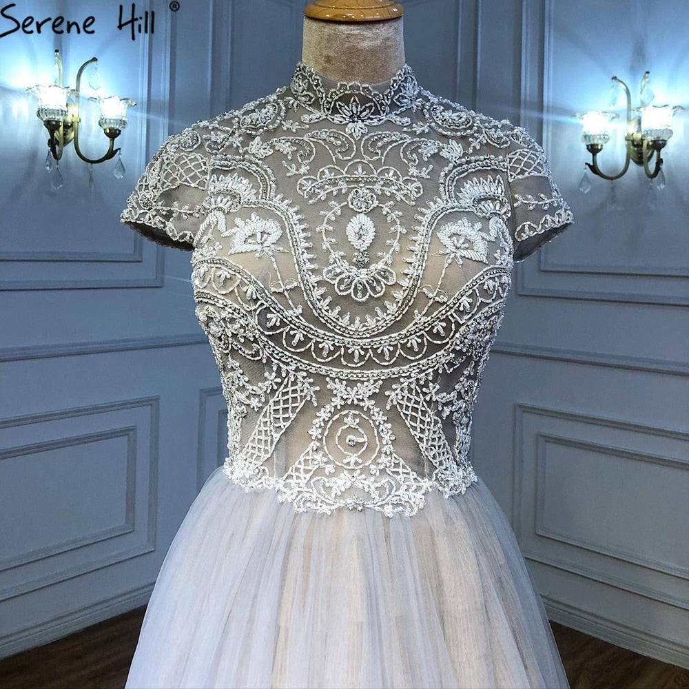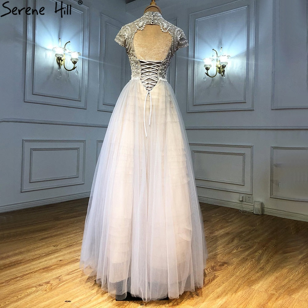 Grey Nude A-Line Evening Dresses Gowns 2025 Crystal Beaded Sexy For Women Wedding Party LA71159