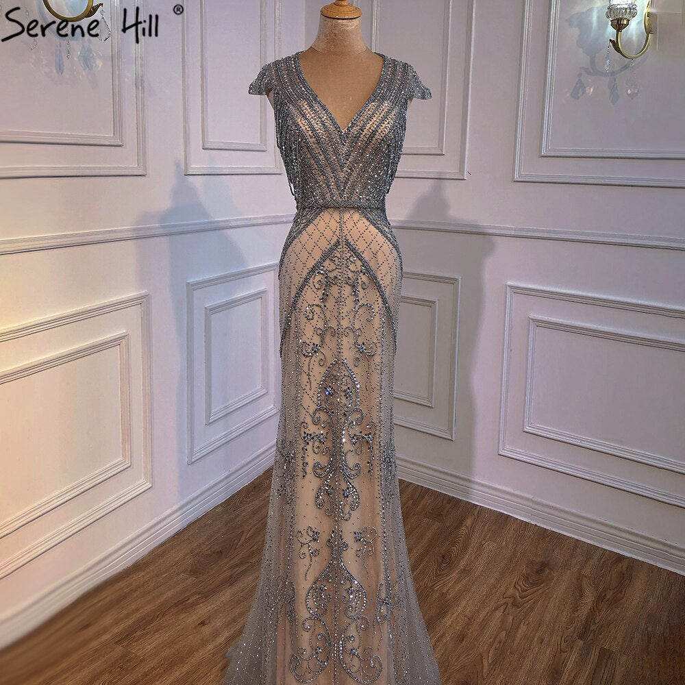 Grey Nude Mermaid Elagant Luxury Evening Gowns 2025 Beading Backless Sexy For Women Party LA70799