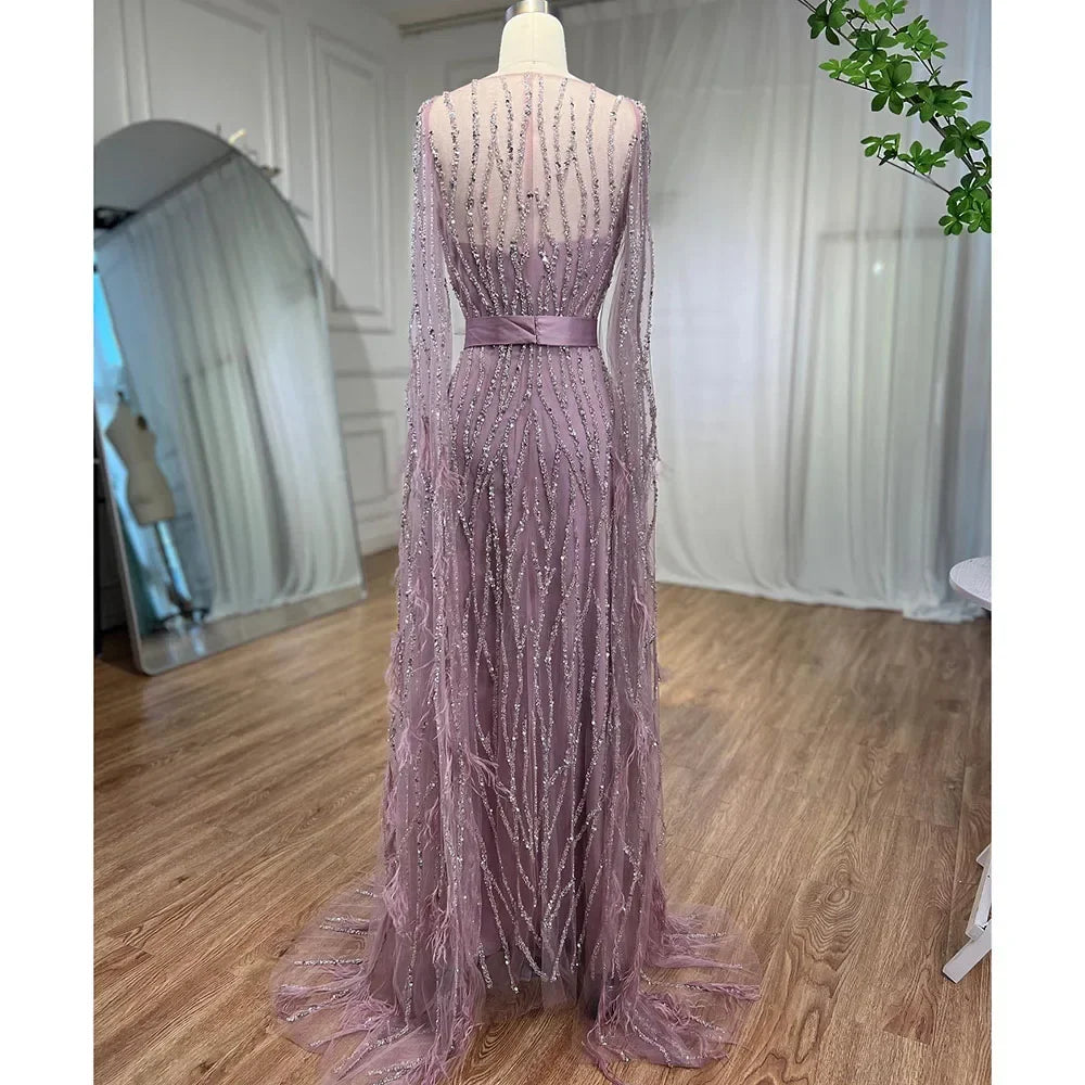 Ivory Mermaid Elegant Feathers Cape Sleeves Square Beaded Luxury Evening Dresses Gowns Caftan Marocain 2025 LA71748