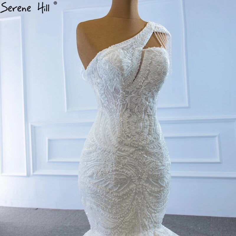 Ivory Mermaid Vintage Wedding Dresses 2025 One Shoulder Beading Lace Sexy High-end Bridal Gown HM67187