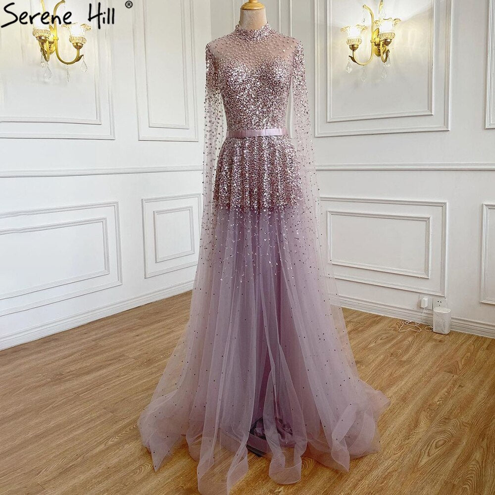 Lavender Luxury A-Line Evening Dresses Gowns 2025 Cape Sleeves Beaded For Women Party LA70066C