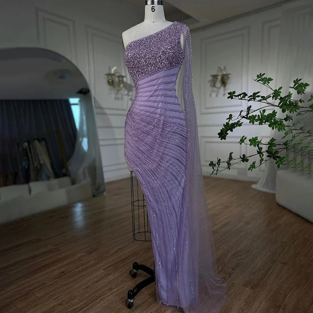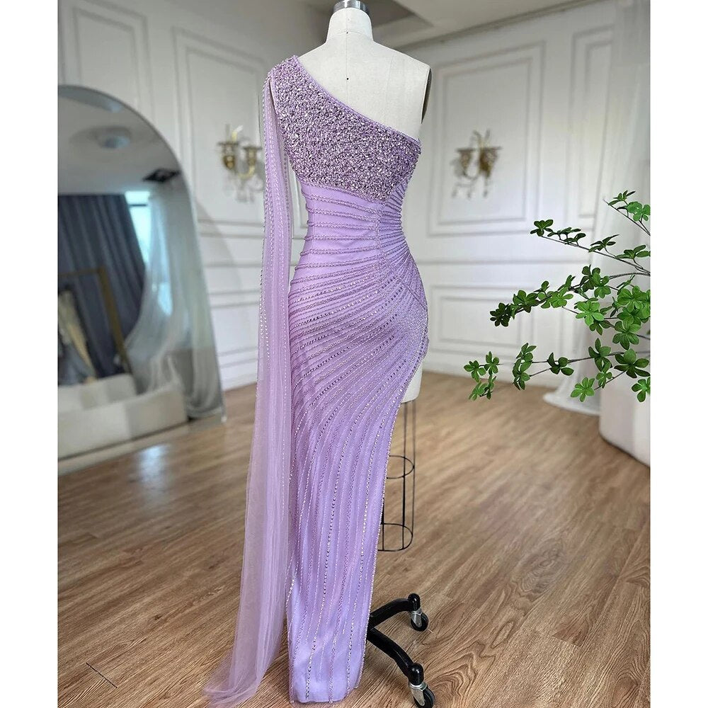 Lilac Mermaid Elegant One Shoulder Sexy High Split Beaded Evening Dresses Gowns 2025 For Women Wedding Party LA72215