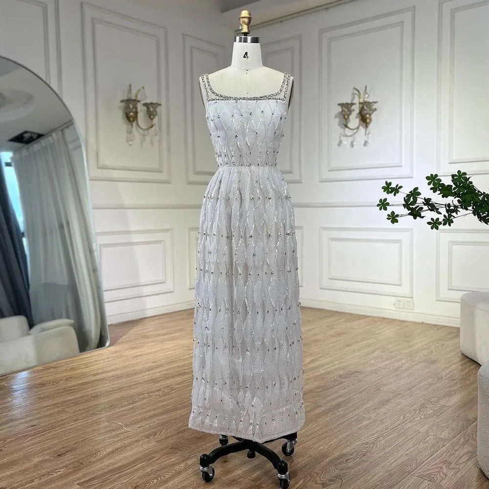 Luxury Crystal Dubai White Evening Dresses for Women Wedding Sqaure Neckline Midi Formal Prom Party Gown LA72473