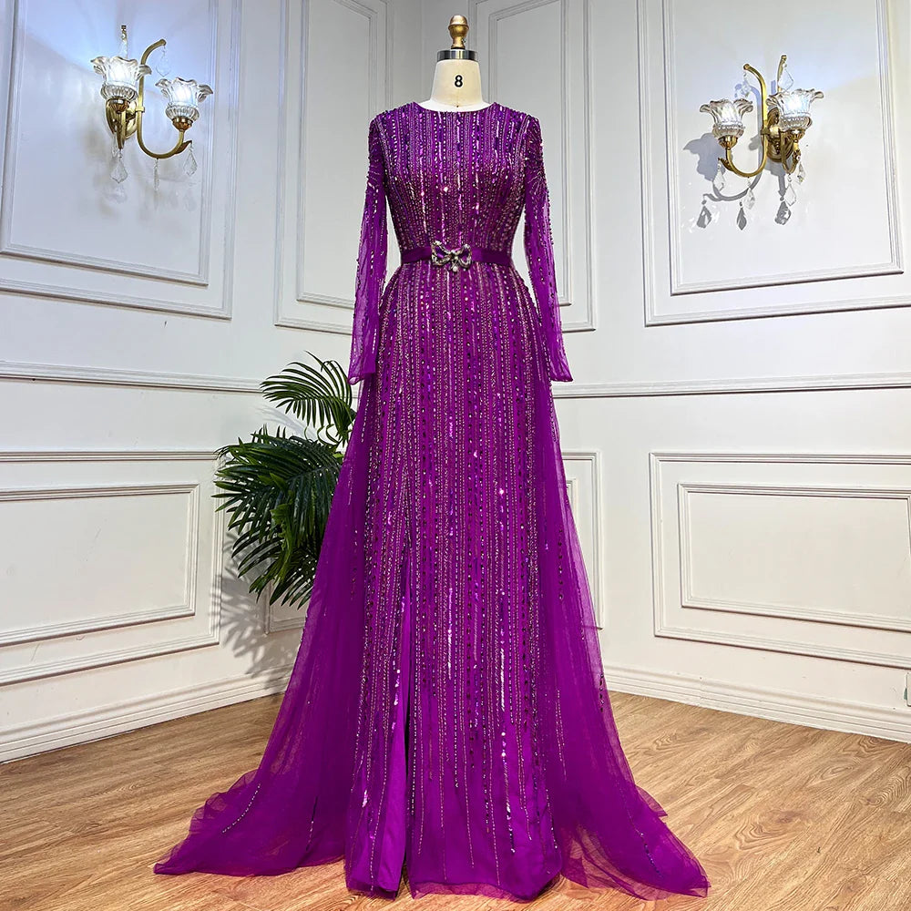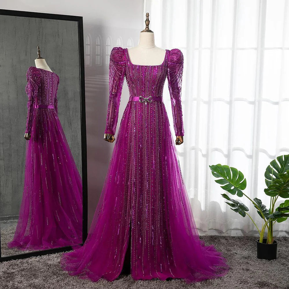 On Sale no return no refund Luxury Dubai Fuchsia Evening Dresses for Women Wedding 2025 Long Sleeve Overskirt Arabic Formal Party LA71678
