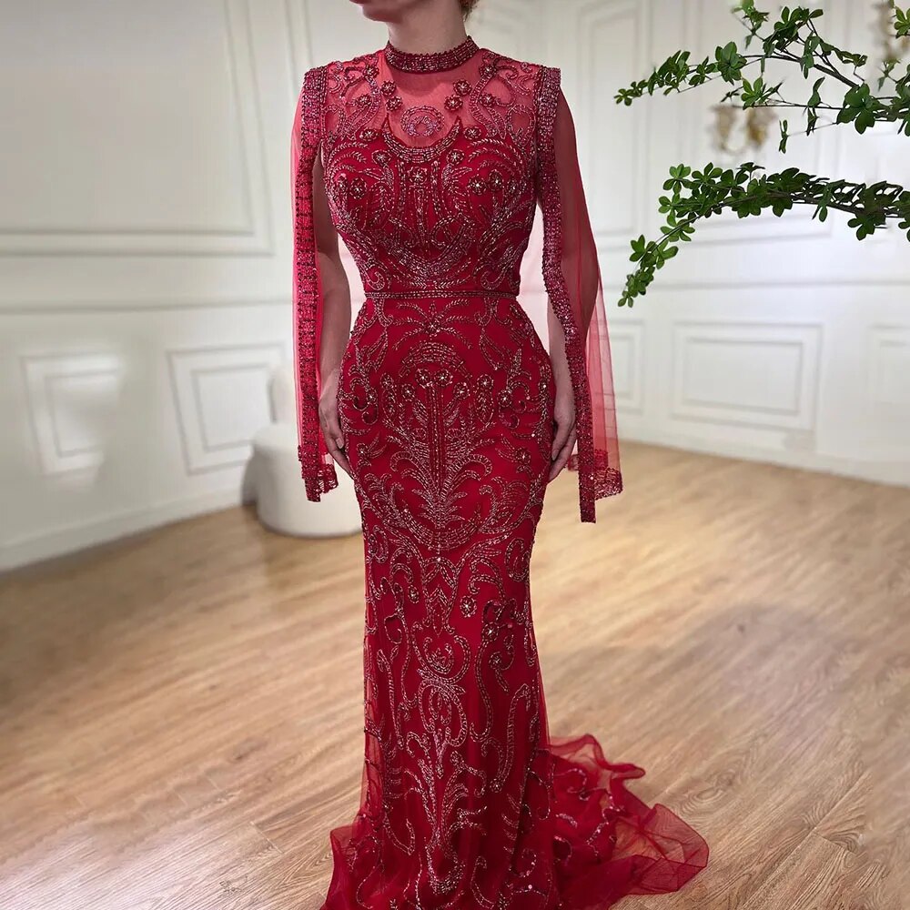 Luxury Grey Nude With Cape Mermaid Luxury Evening Dresses Gowns 2025 Beaded Elegant Sexy For Woman Party LA71027