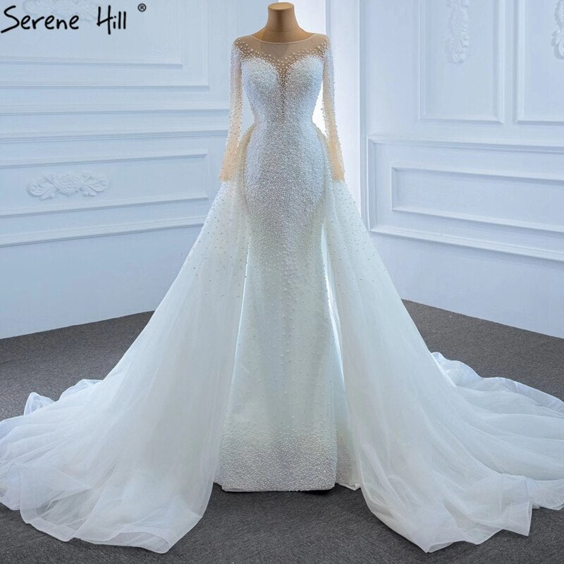 Luxury Ivory Detachable Train Mermaid Wedding Dresses Gowns 2025 Pearls Beading Bride Dress HM67182 Custom Made