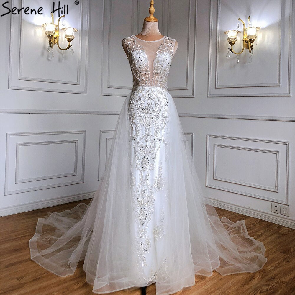 Luxury Ivory Mermaid Evening Dresses Gowns 2025 Beading Elegant With Train Formal Dress LA71109