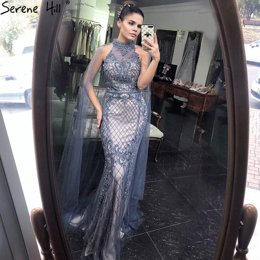 Luxury Navy Blue With Train Evening Dresses Gowns 2025 Mermaid Beading Diamond Elegant For Women Party LA70807