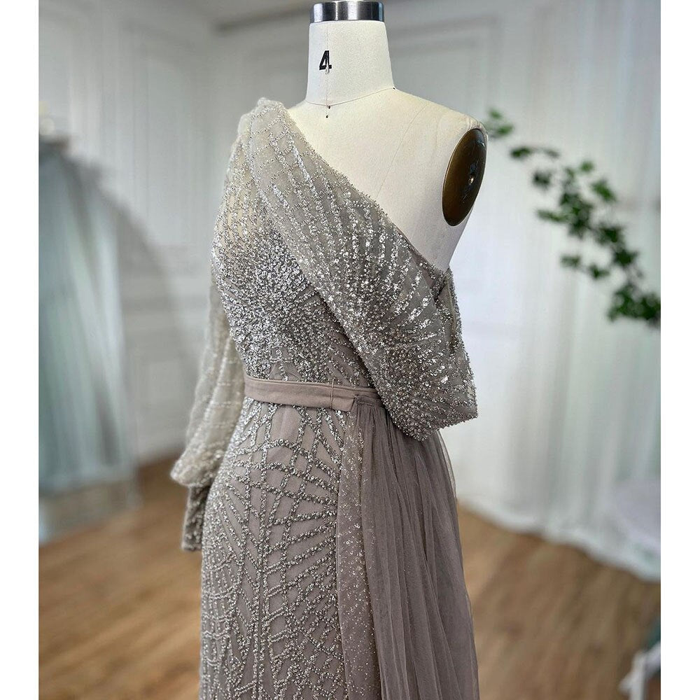 Mermaid Caramel One Shoulder Overskirt Beaded Luxury Evening Dresses Gowns 2025 For Women Wedding Party LA72128