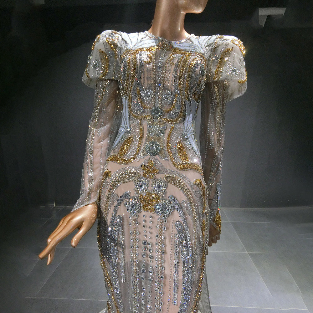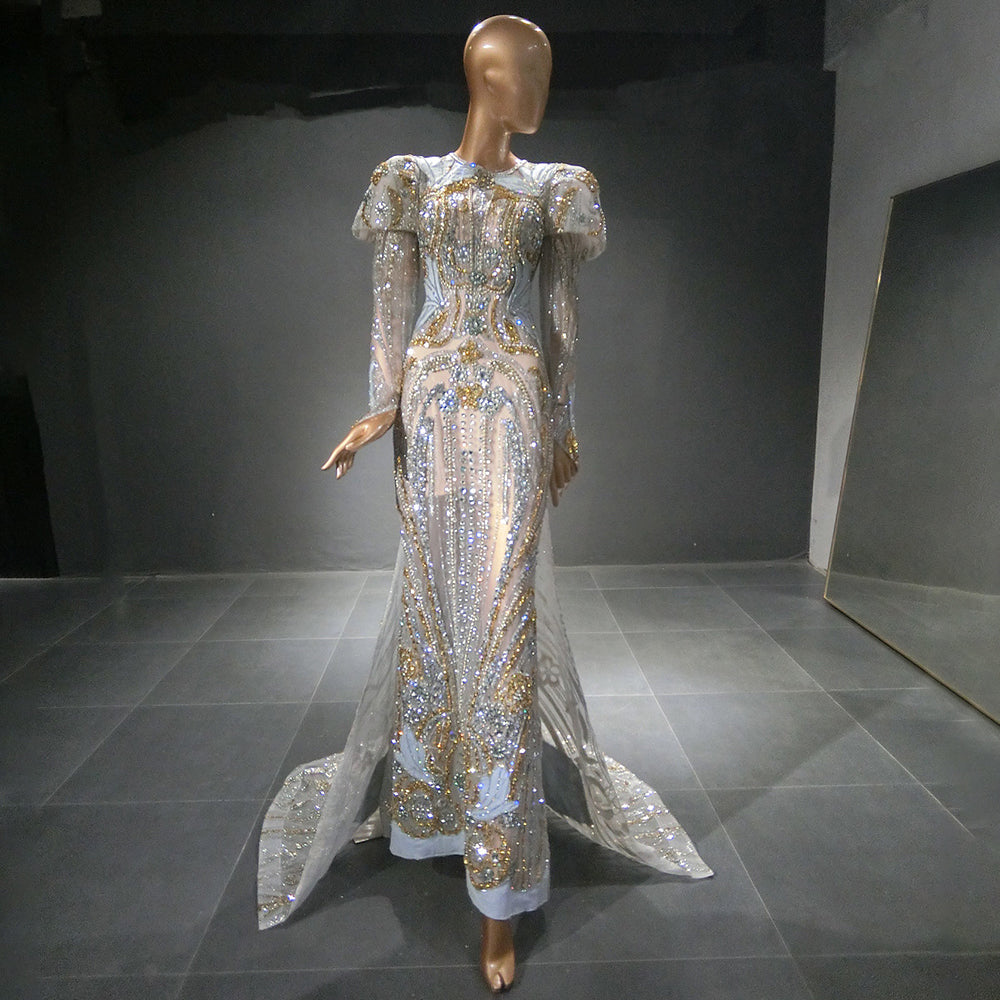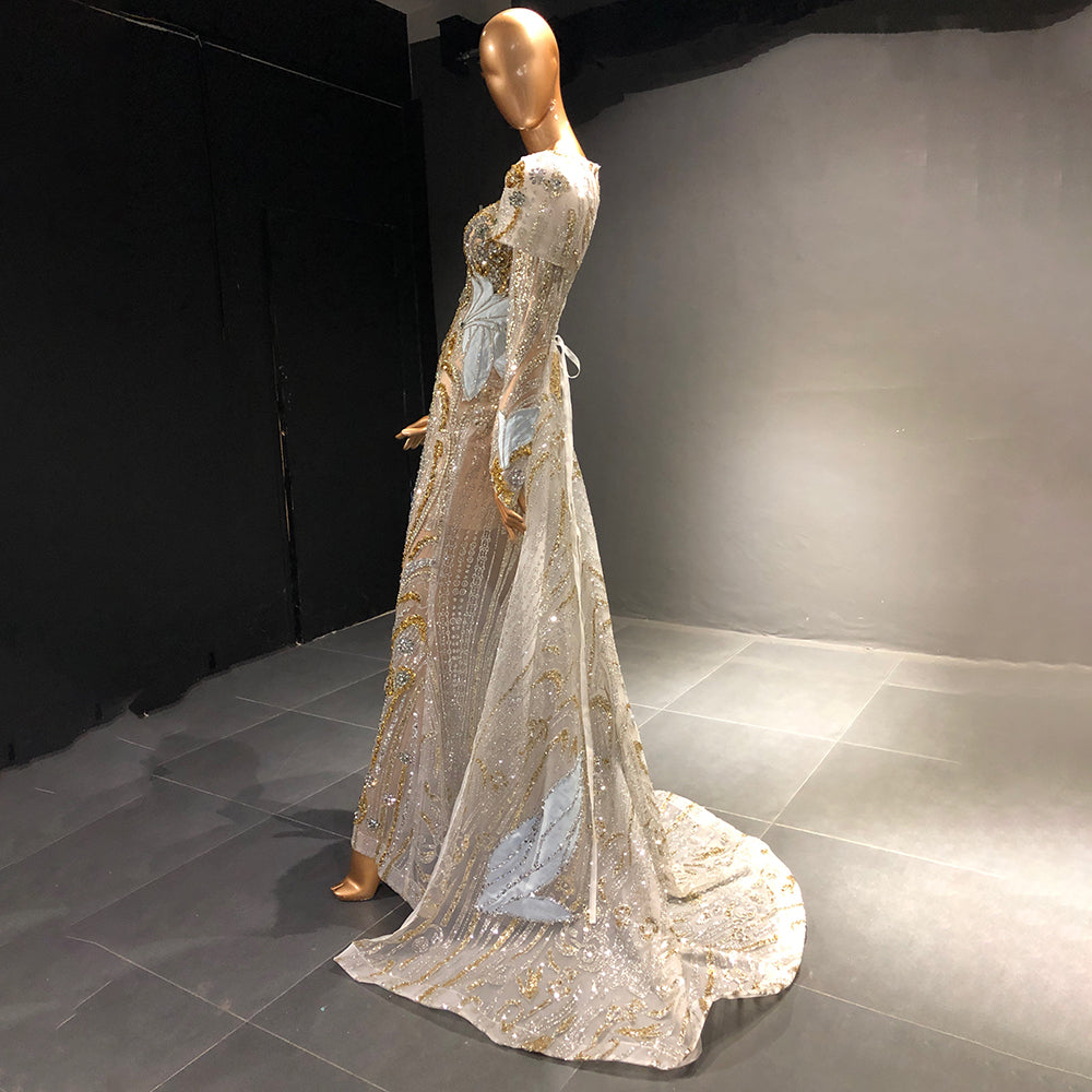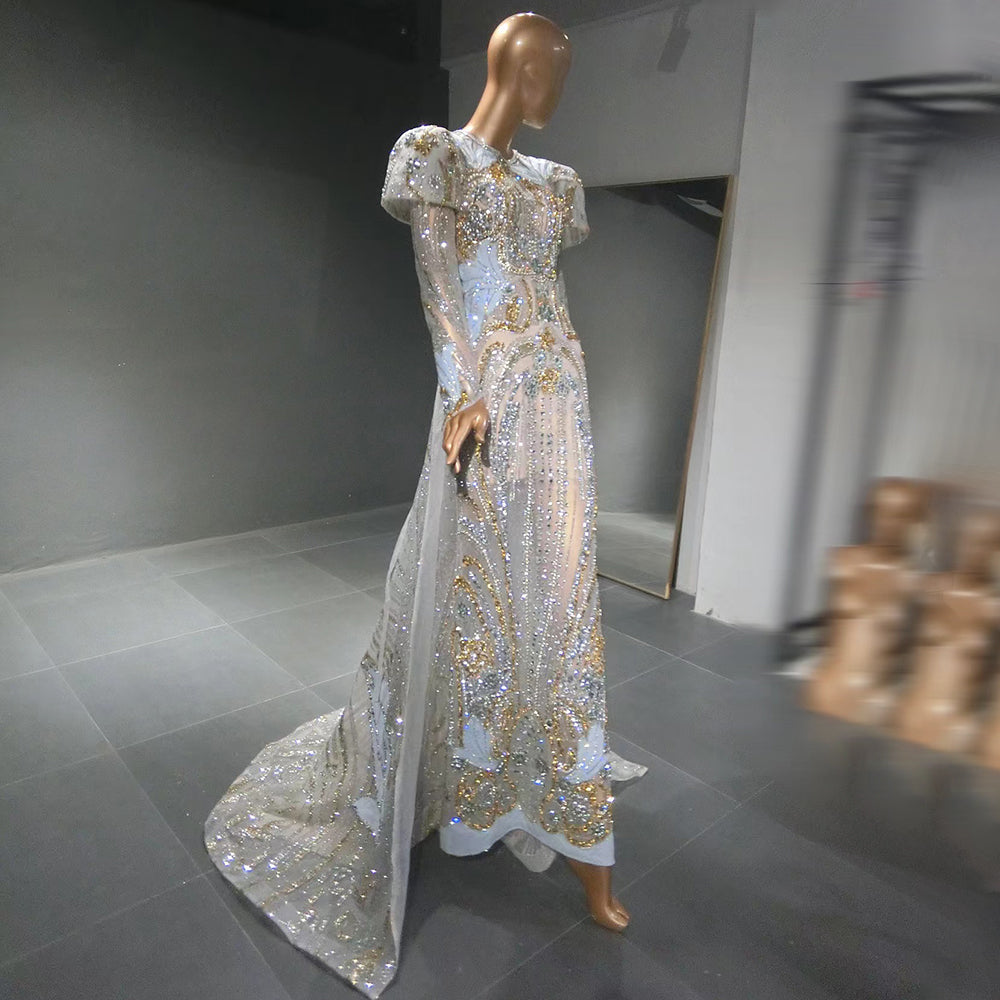 Moslim Zilveren Mermaid Overrok Avond Jurken 2025 Kralen Crystal Luxe Elegant Voor Vrouwen Party LA71573