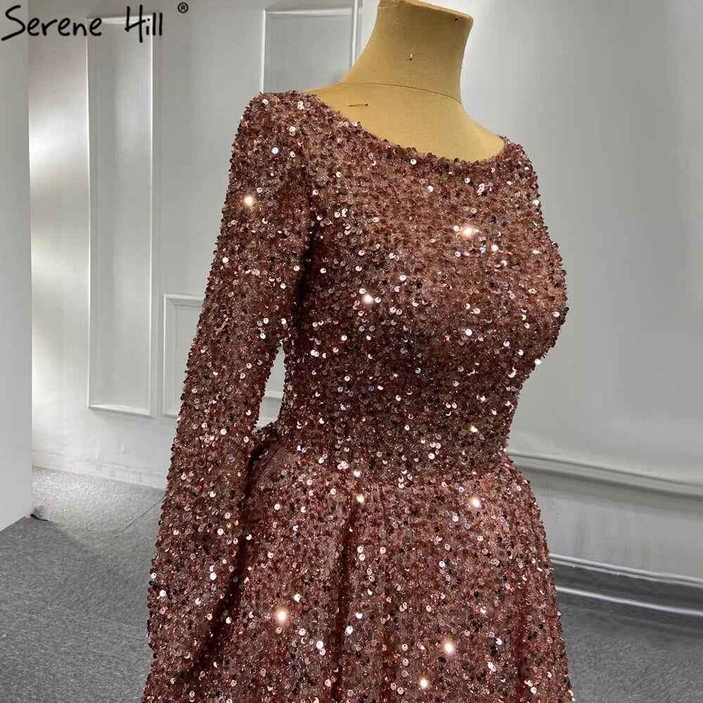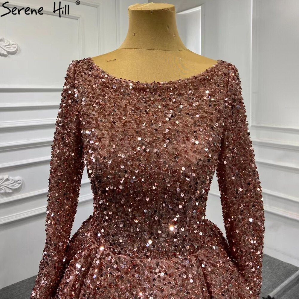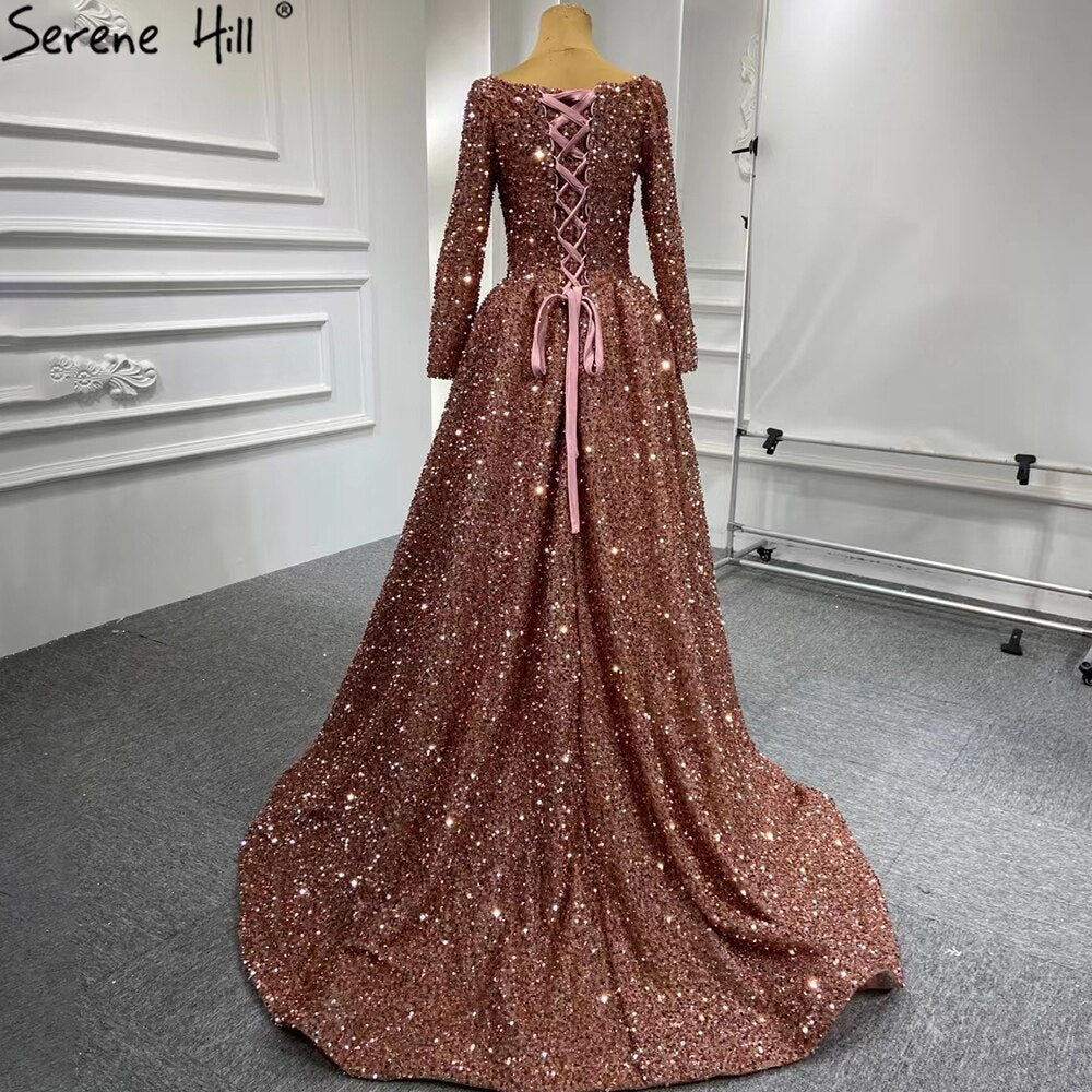 Muslim Bean Pink Gold Evening Dresses Gowns 2025 A-Line Luxury Sparkle For Women Party HM67124A