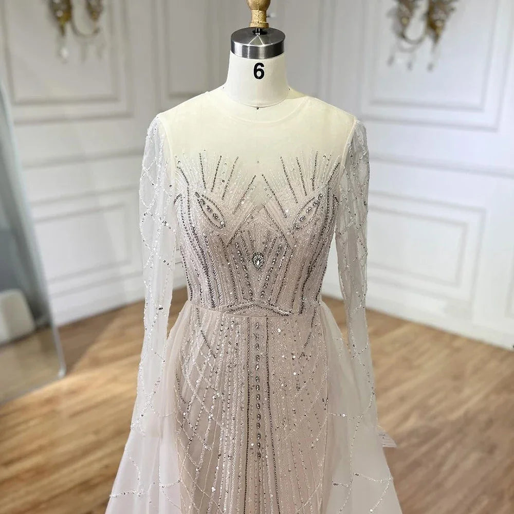 Muslim Beige Elegant Overskirt Mermaid Luxury Beaded Evening Dresses Gowns 2025 For Woman Party LA72528