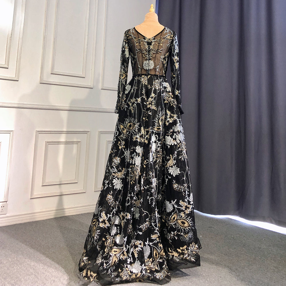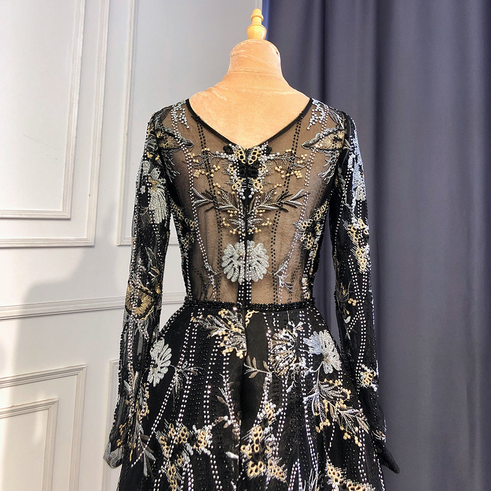 Muslim Black A-Line Sweetheart Necck Evening Dresses Long Arm Gowns 2025 Luxury Beaded For Women Party LA71023A