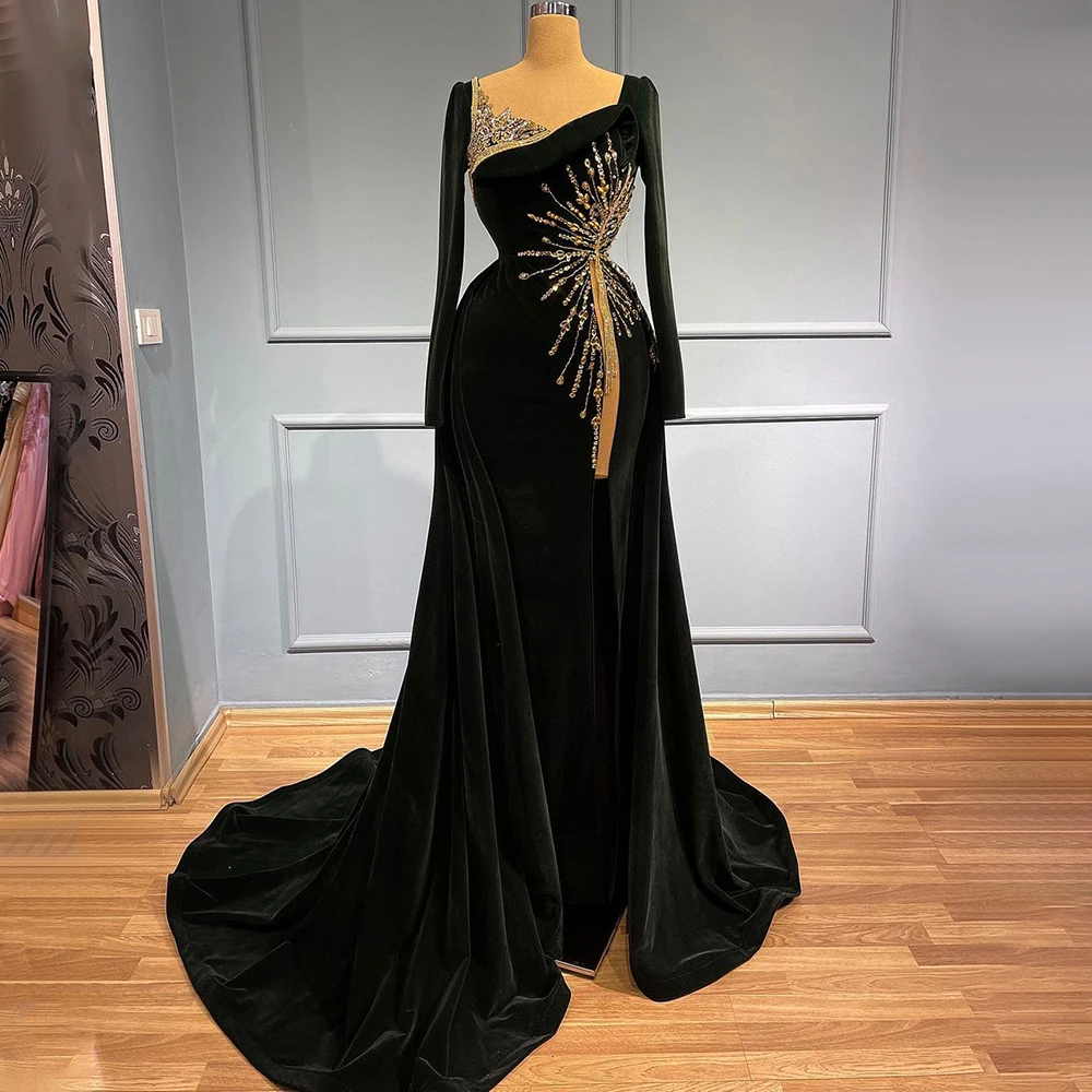 Muslim Black Mermaid Evening Dresses Gowns 2025 Velour Overskirt Elegant Luxury For Women Party LA71513