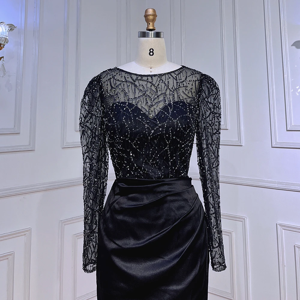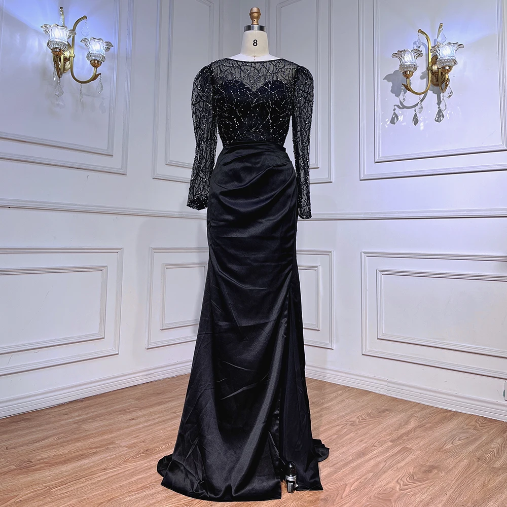 Muslim Black Mermaid Luxury Beaded Satin Evening Dresses Dubai Formal Gowns 2025 For Woman Wedding Party LA72040
