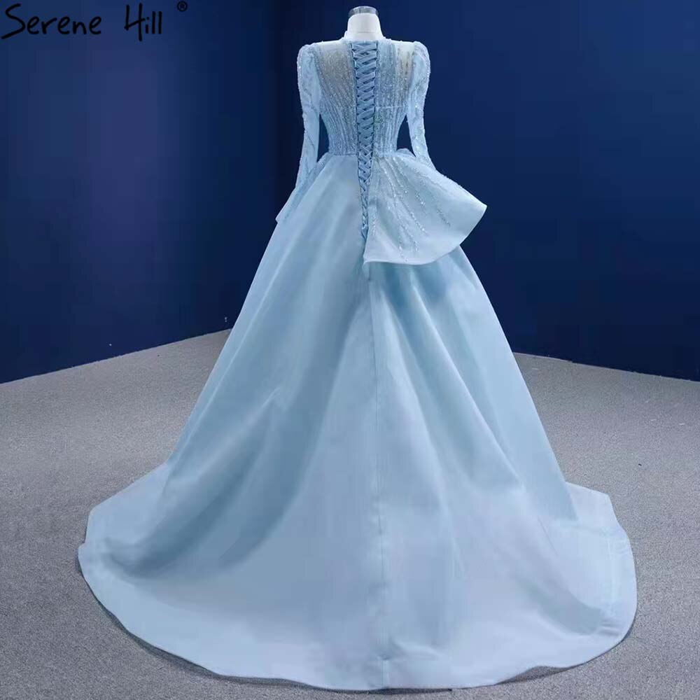 Muslim Blue Lace Up Wedding Dresses 2025 Beaded High-end Bridal Dress HM67392 Custom Made