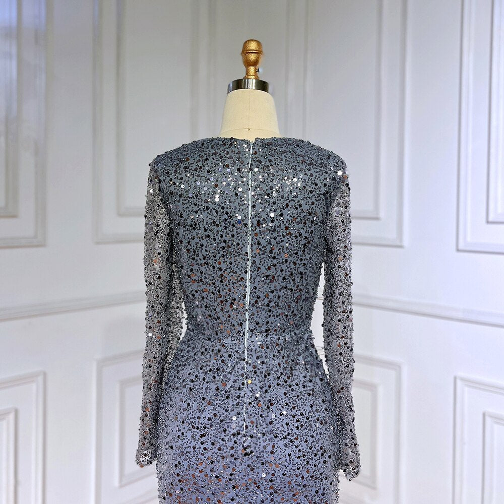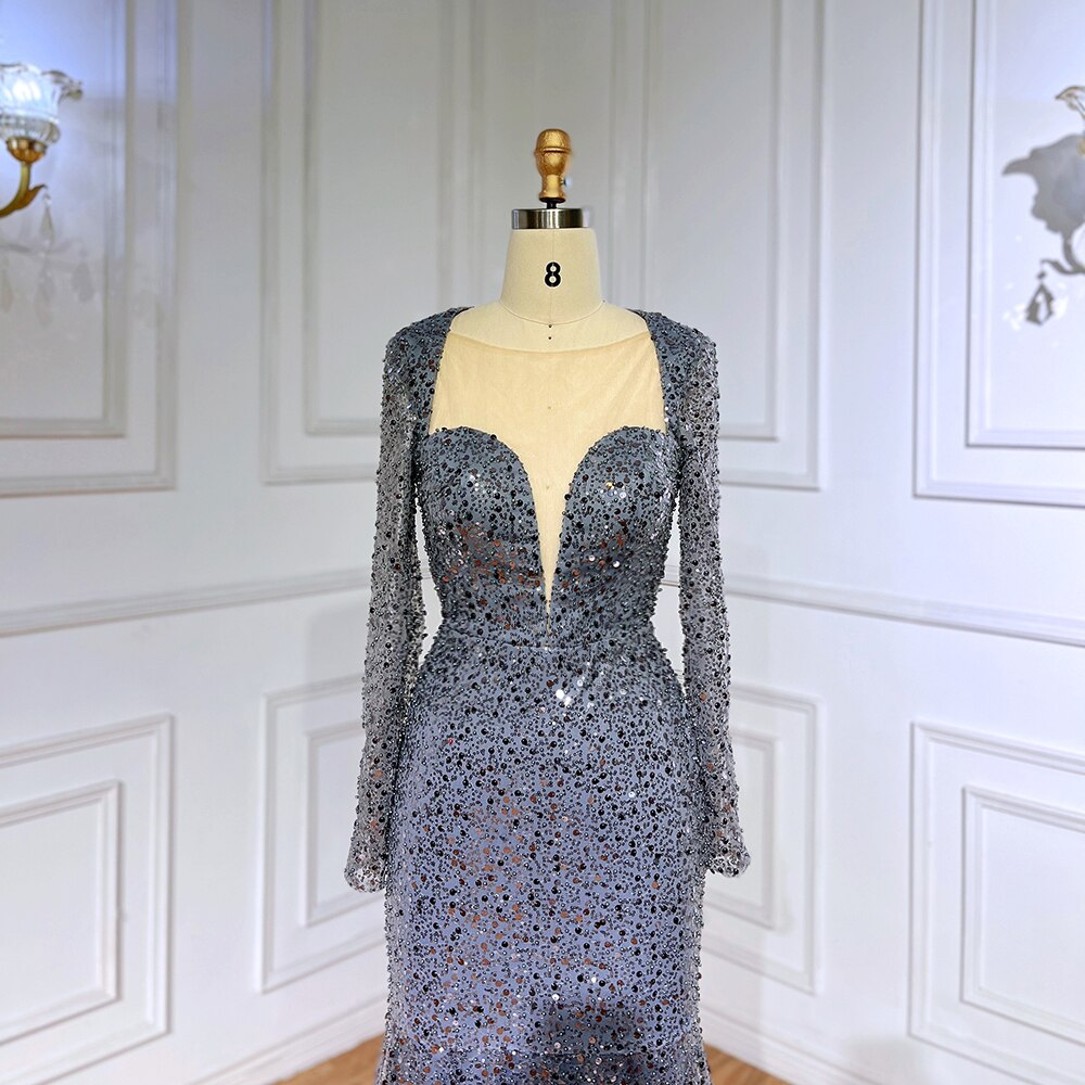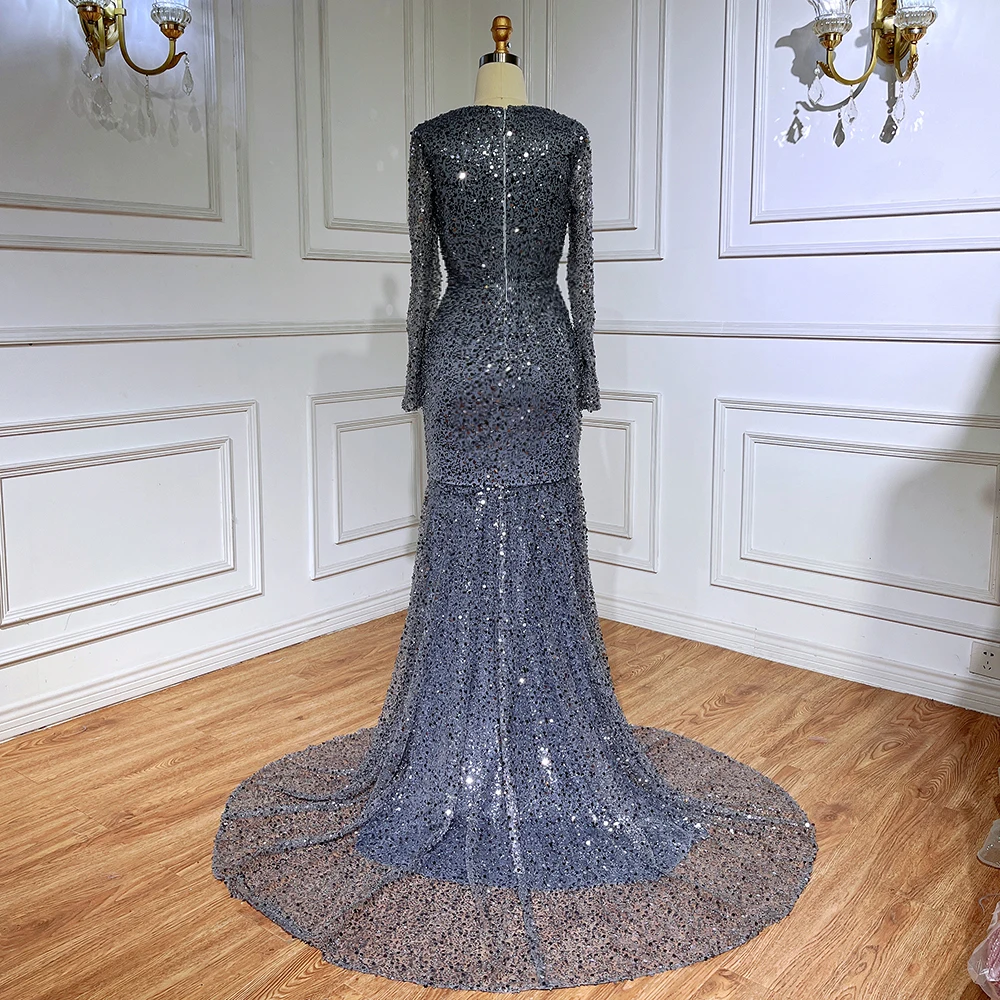 Muslim Blue Mermaid Sparkle Sequin Beaded Luxury Evening Dresses Gowns For Women Wedding Party 2025 LA71486