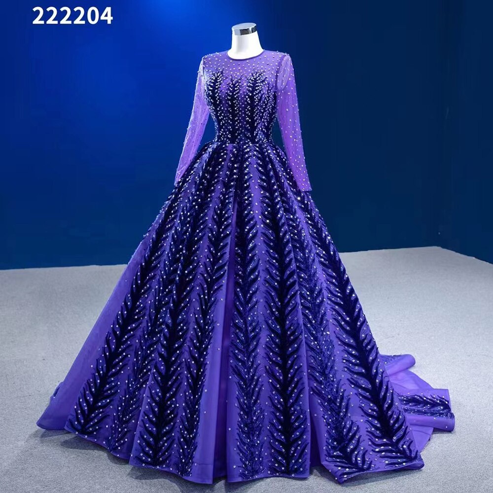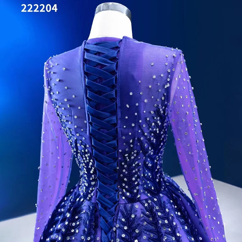 Muslim Blue Purple Luxury Beaded Appliques Lace Up Ball Gowns Wedding Dress 2025 High End Custom Made HM222204