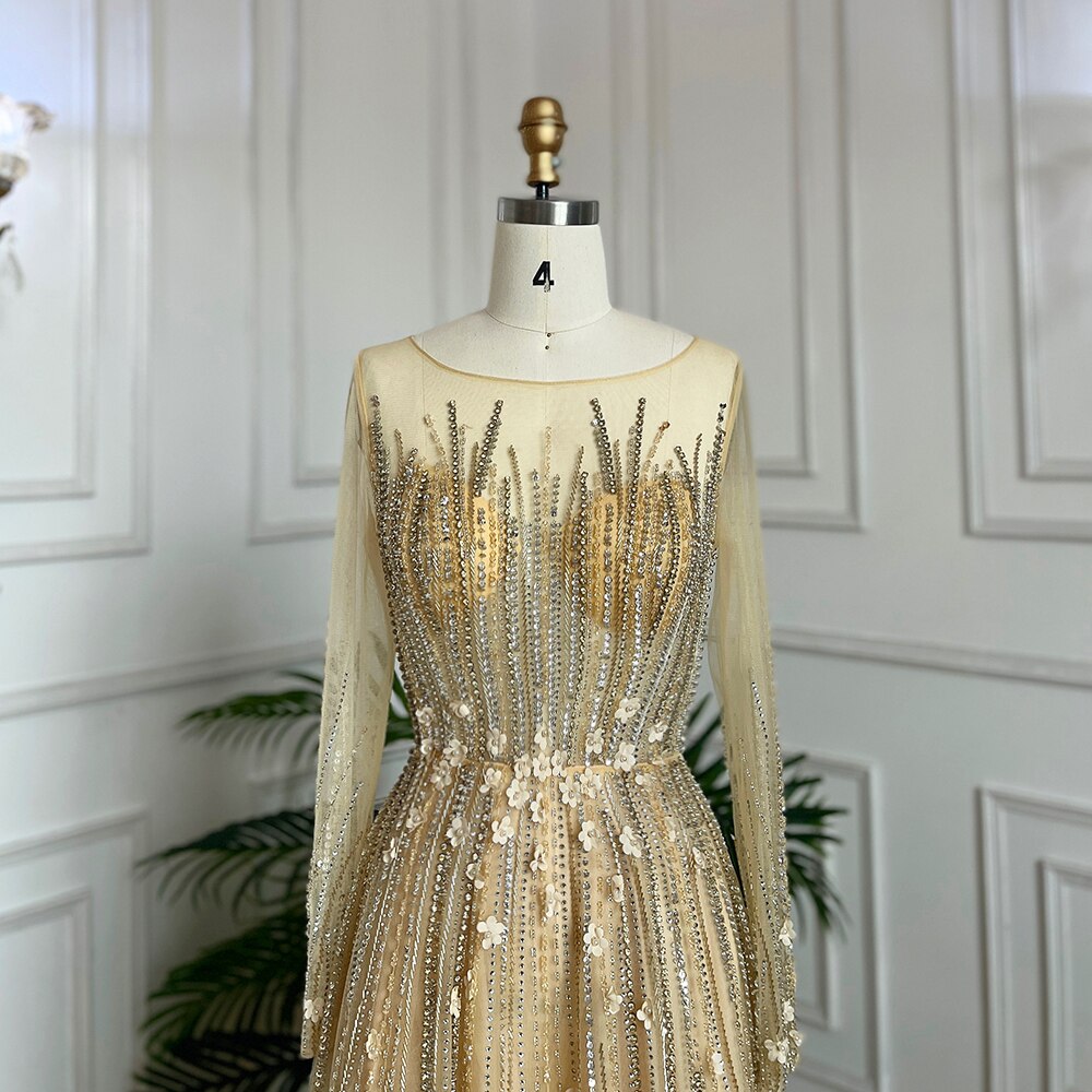 Muslim Gold A Line Beaded Crystal Appliques Luxury Long Evening Dresses Gowns For Women Wedding Party 2025 LA71957