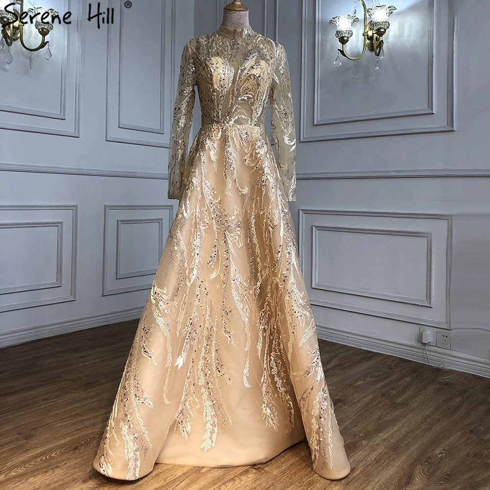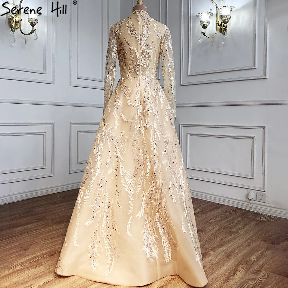 Muslim Gold A-Line Evening Dresses Gowns 2025 Lace Beading Crystal For Women Party LA70957