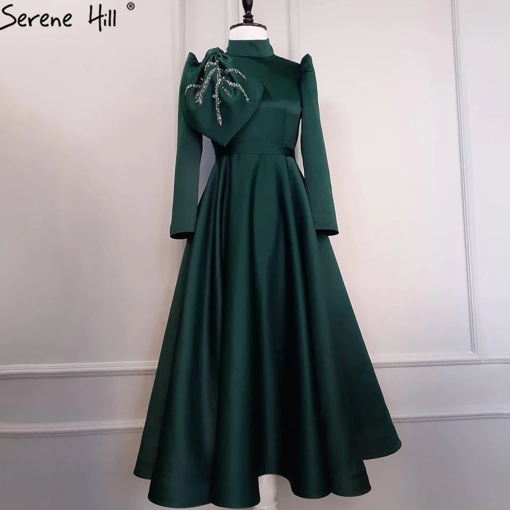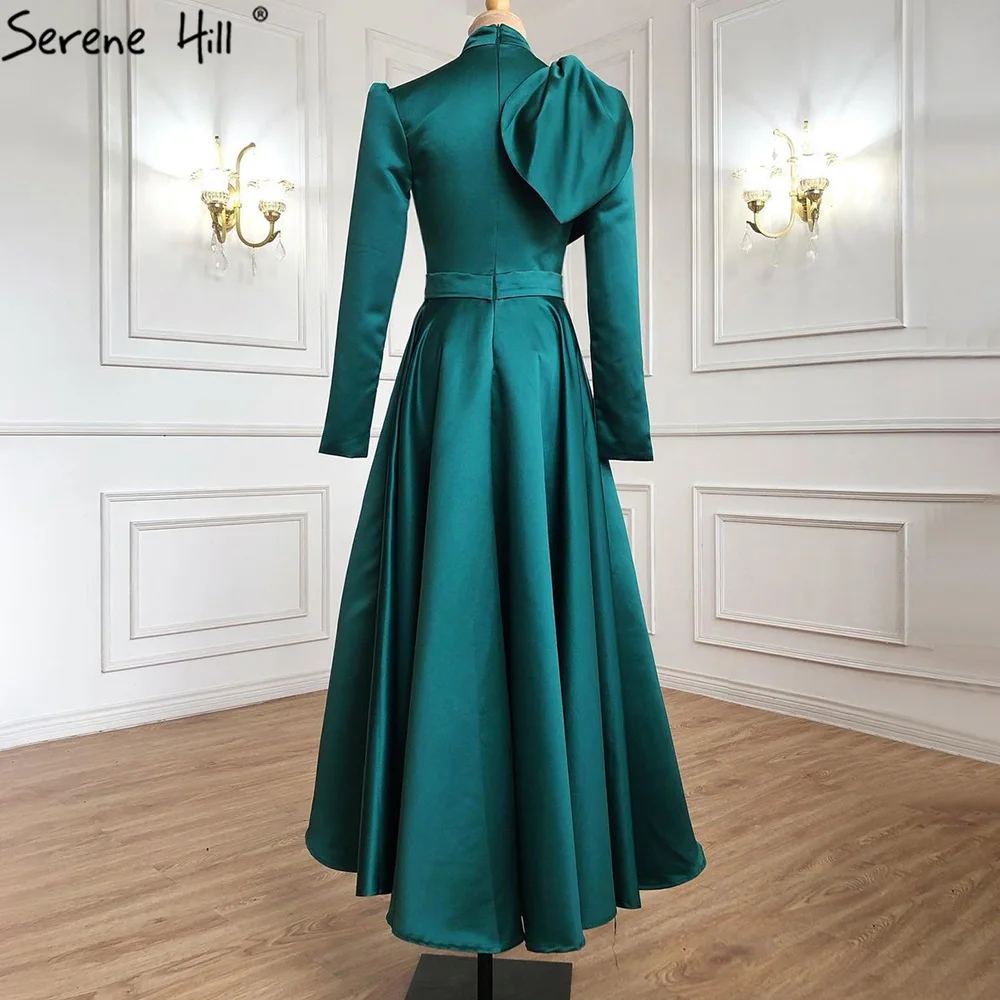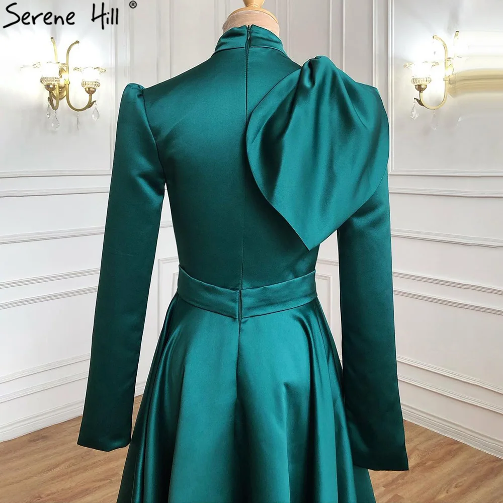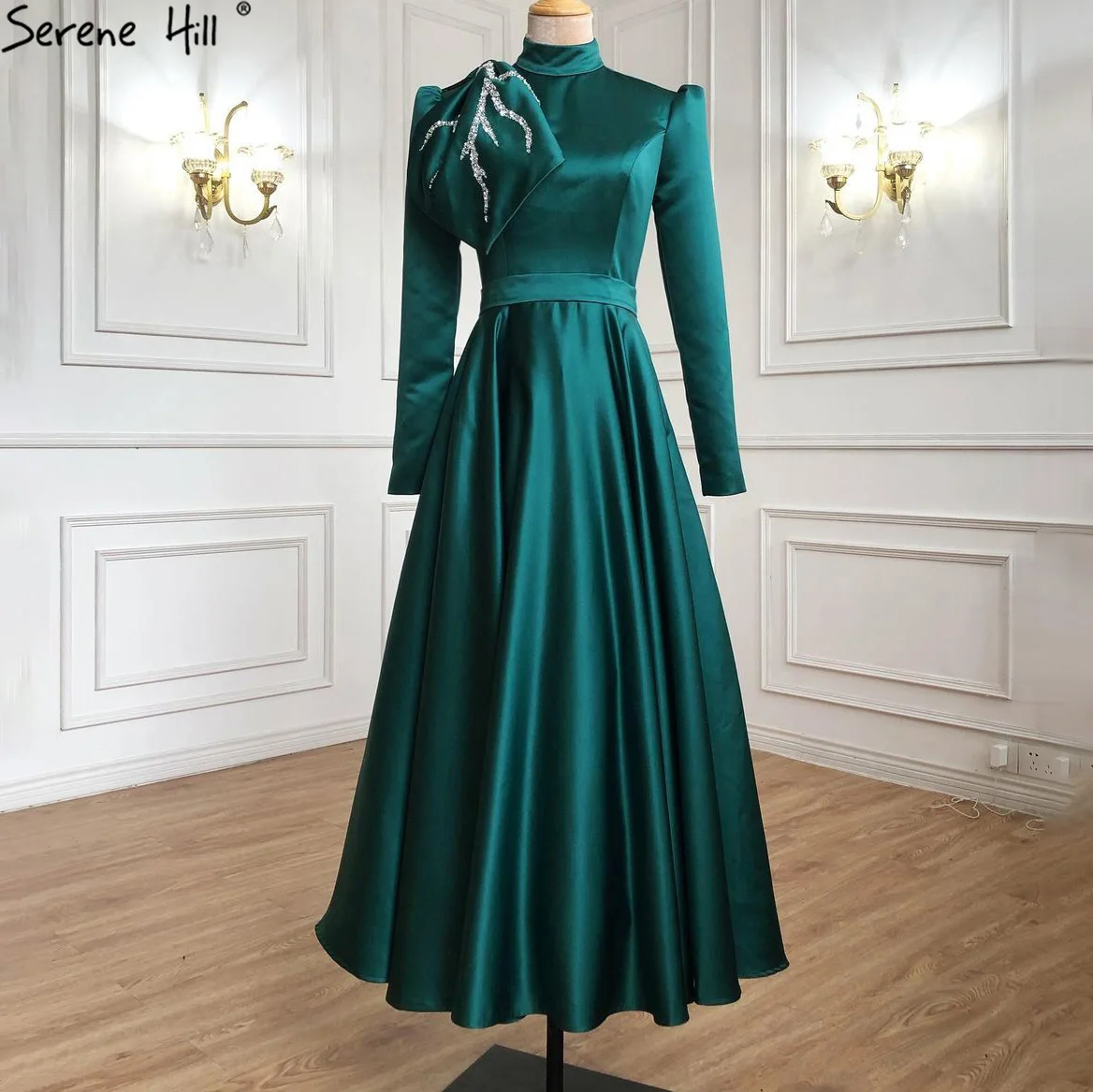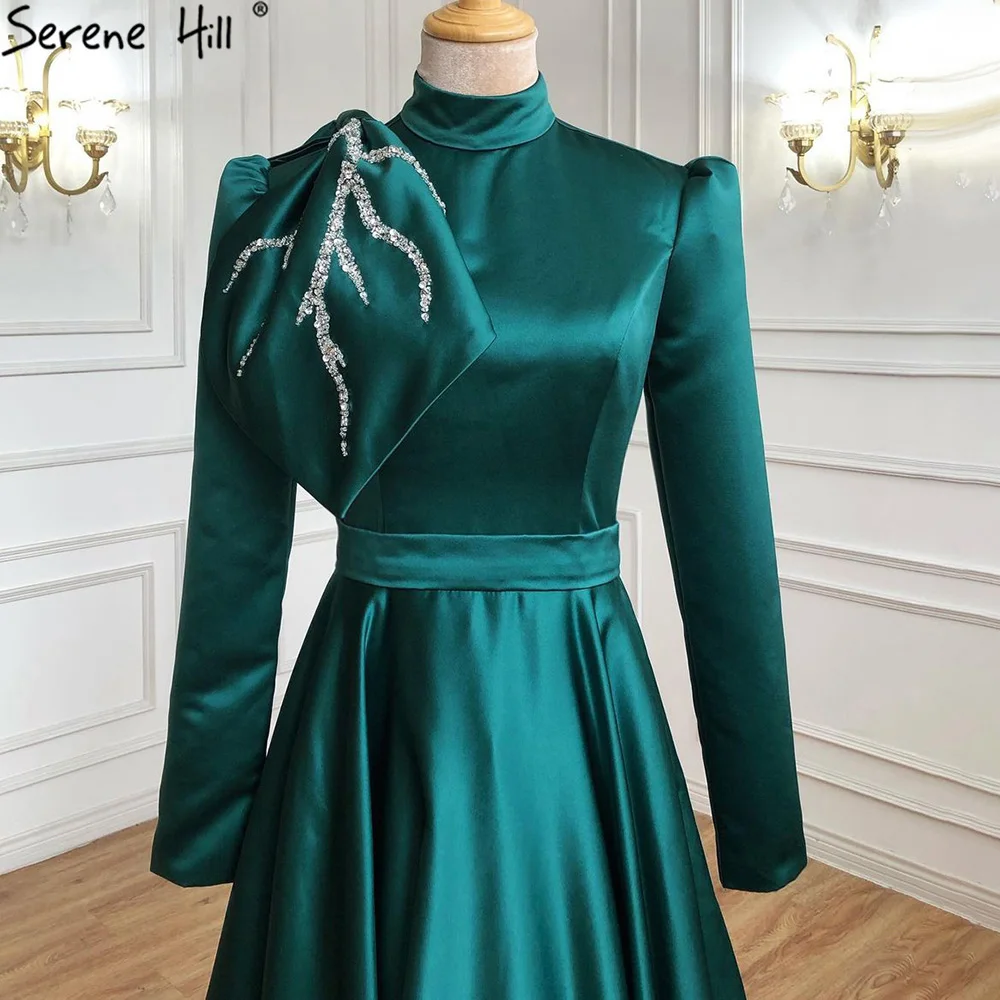 Muslim Green A-Line Evening Dresses Gowns 2025 Beading Satin For Women Wedding Party LA71115