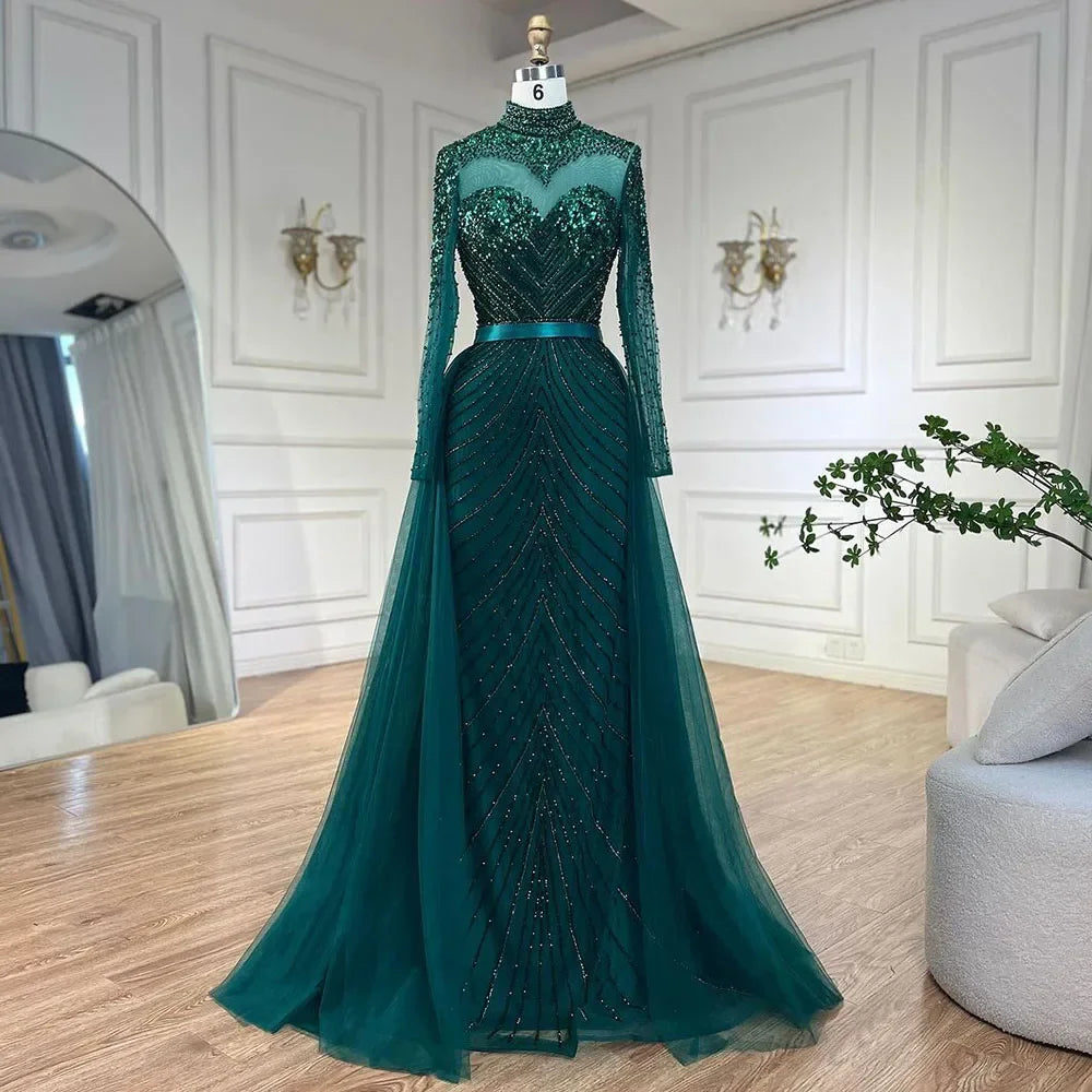 Muslim Green Elegant Mermaid Luxury Lace Beaded Arabic Evening Dresses Gowns For Women Wedding Party 2025 LA71913