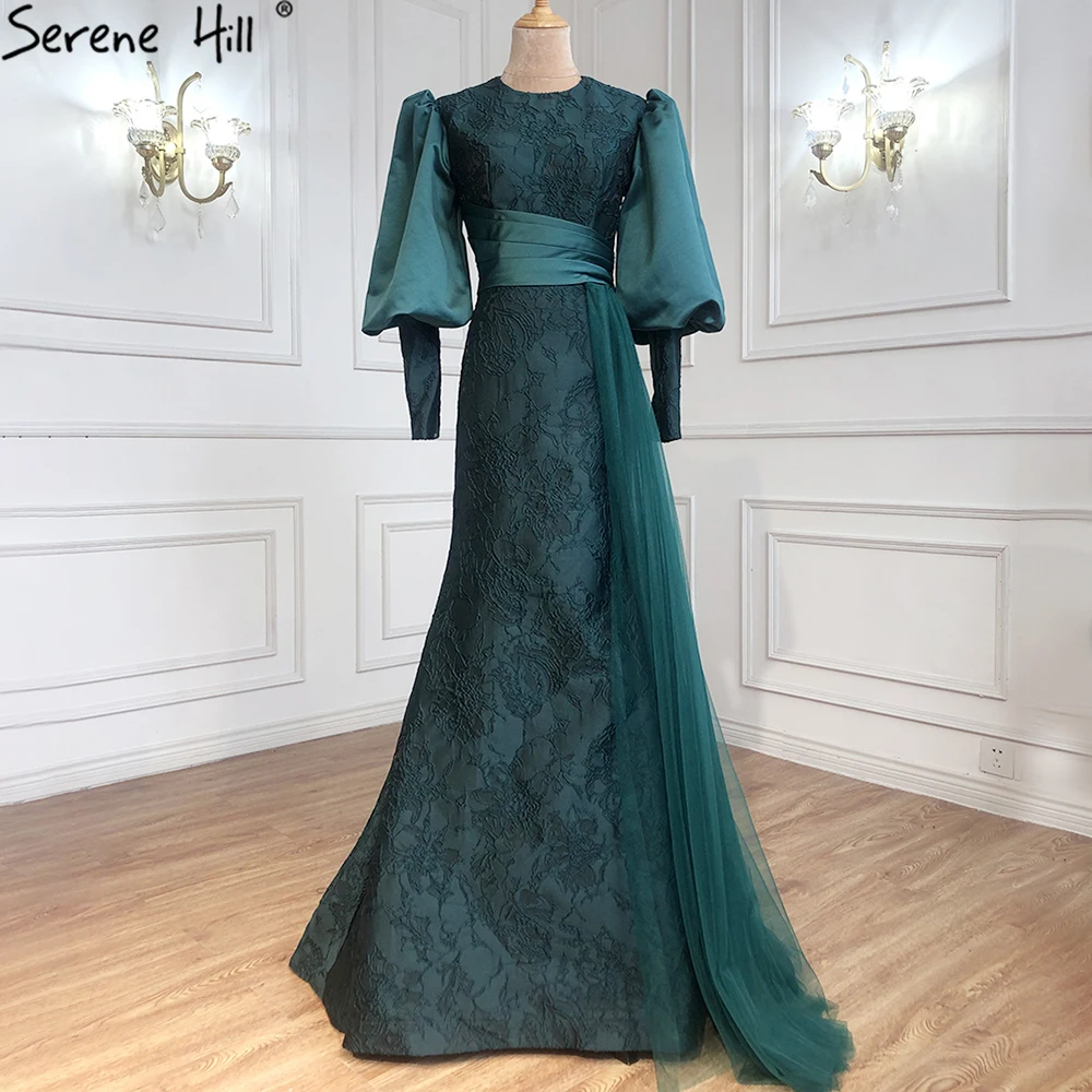 Muslim Green Lantern Sleeves Evening Dresses Gowns 2025 Mermaid Elegant For Women Party LA71160