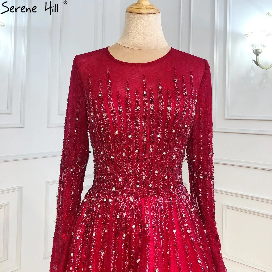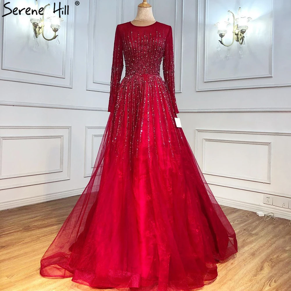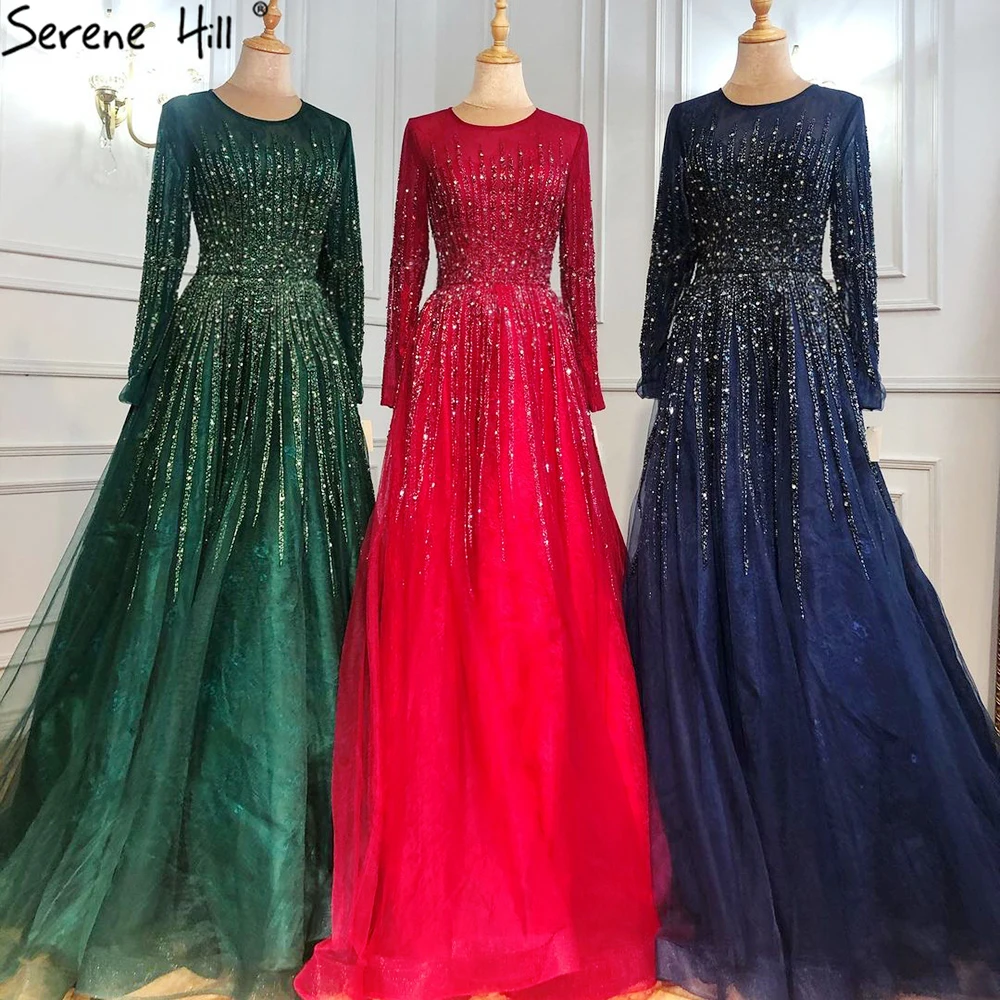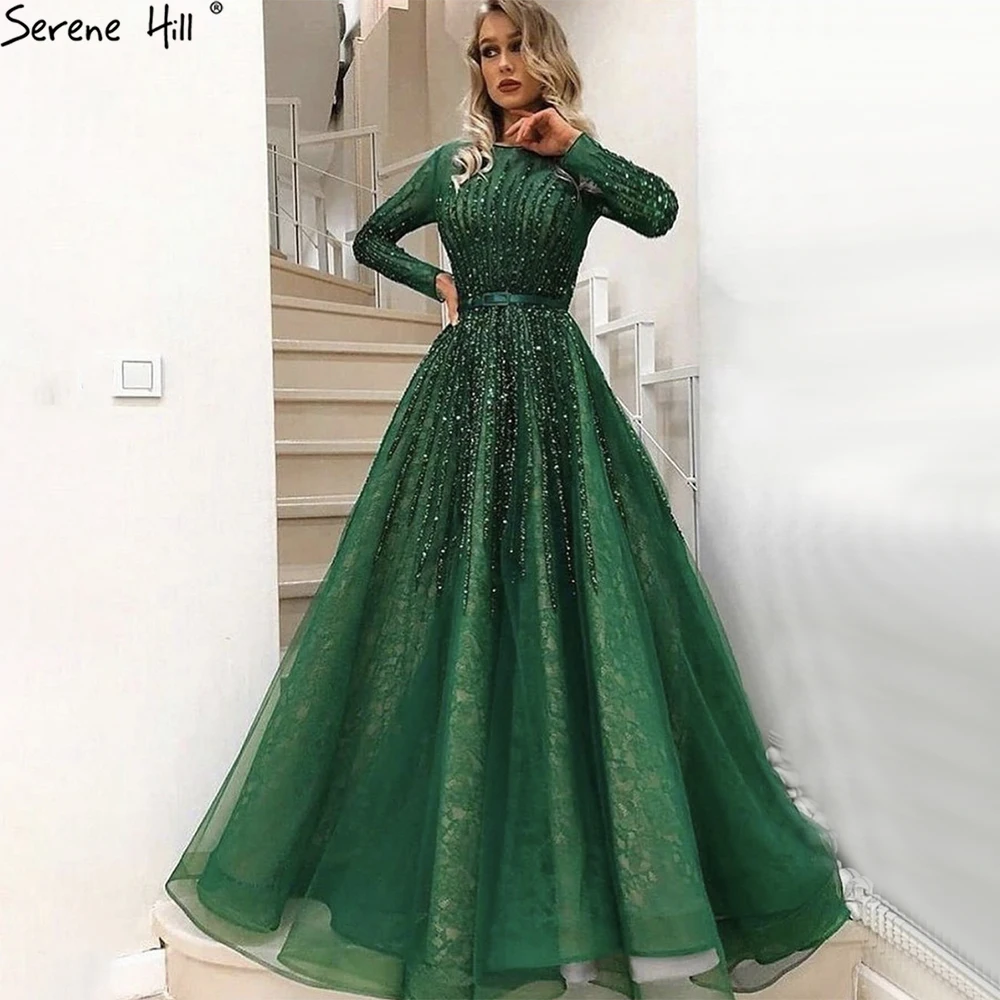 Muslim Green Luxury Evening Dresses Gowns 2025 A-Line Beading Long Sleeves For Women Party LA70927