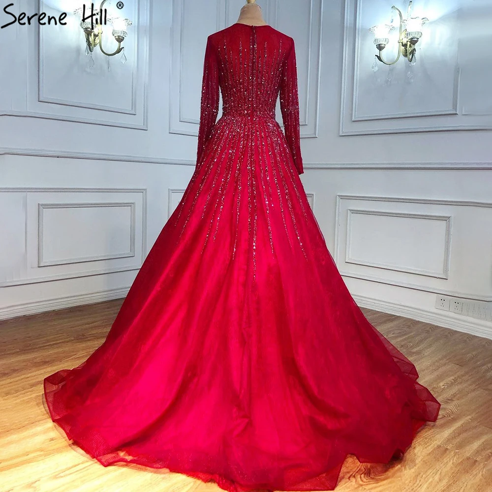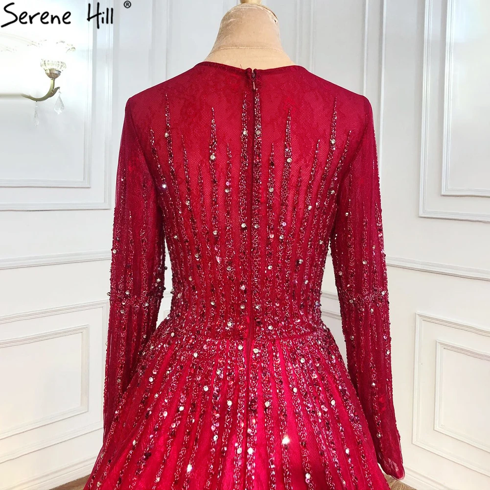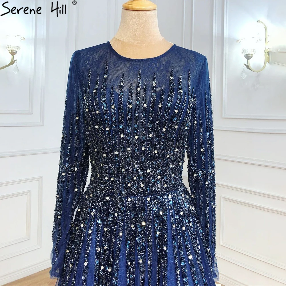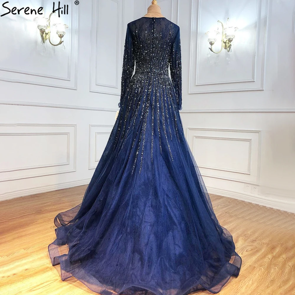 Muslim Green Luxury Evening Dresses Gowns 2025 A-Line Beading Long Sleeves For Women Party LA70927