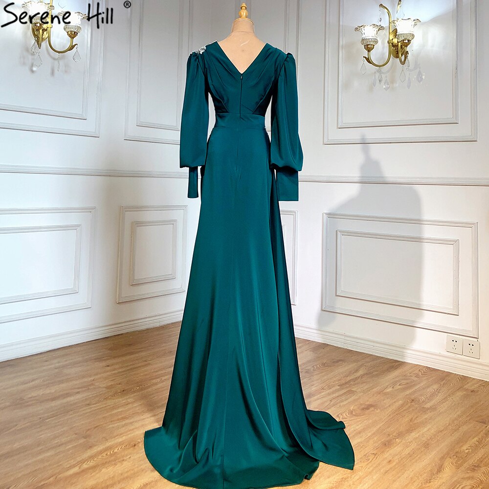 Muslim Green Mermaid Overskirt Evening Dresses Gowns 2025 Elegant Luxury Beaded Satin For Women Party LA71491