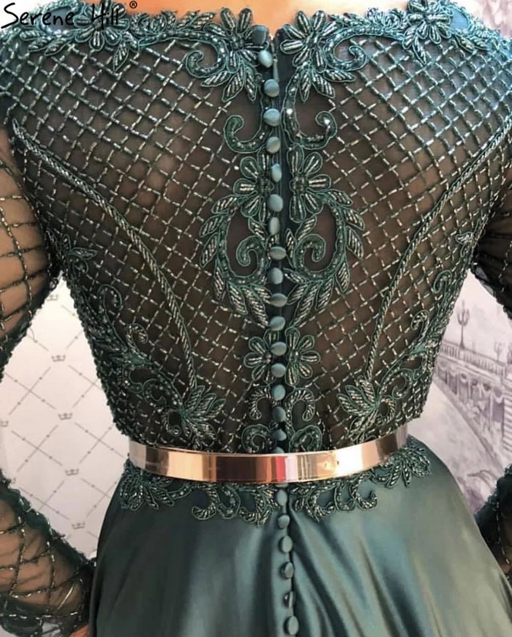 Muslim Green Satin Evening Dresses Gowns 2025 Beaded A-Line For Women Wedding Party LA71252