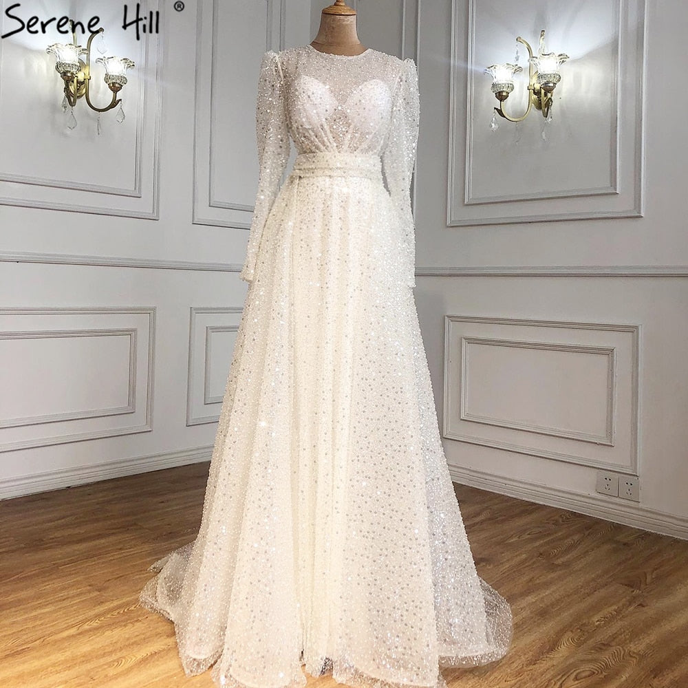 Muslim Ivory With Train Wedding Dresses 2025 Luxury Mermaid Elegant Beading Bride Dress HA2478 Custom Made