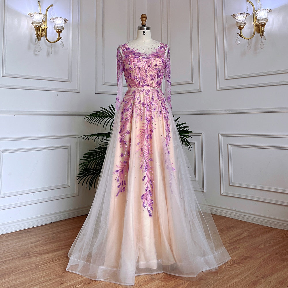 Muslim Lilac A Line O Neck Beaded Dubai Luxury Long Evening Dresses Gowns 2025 For Women Wedding Party LA71958