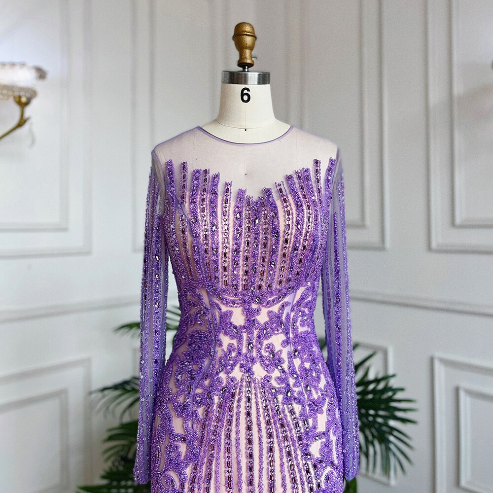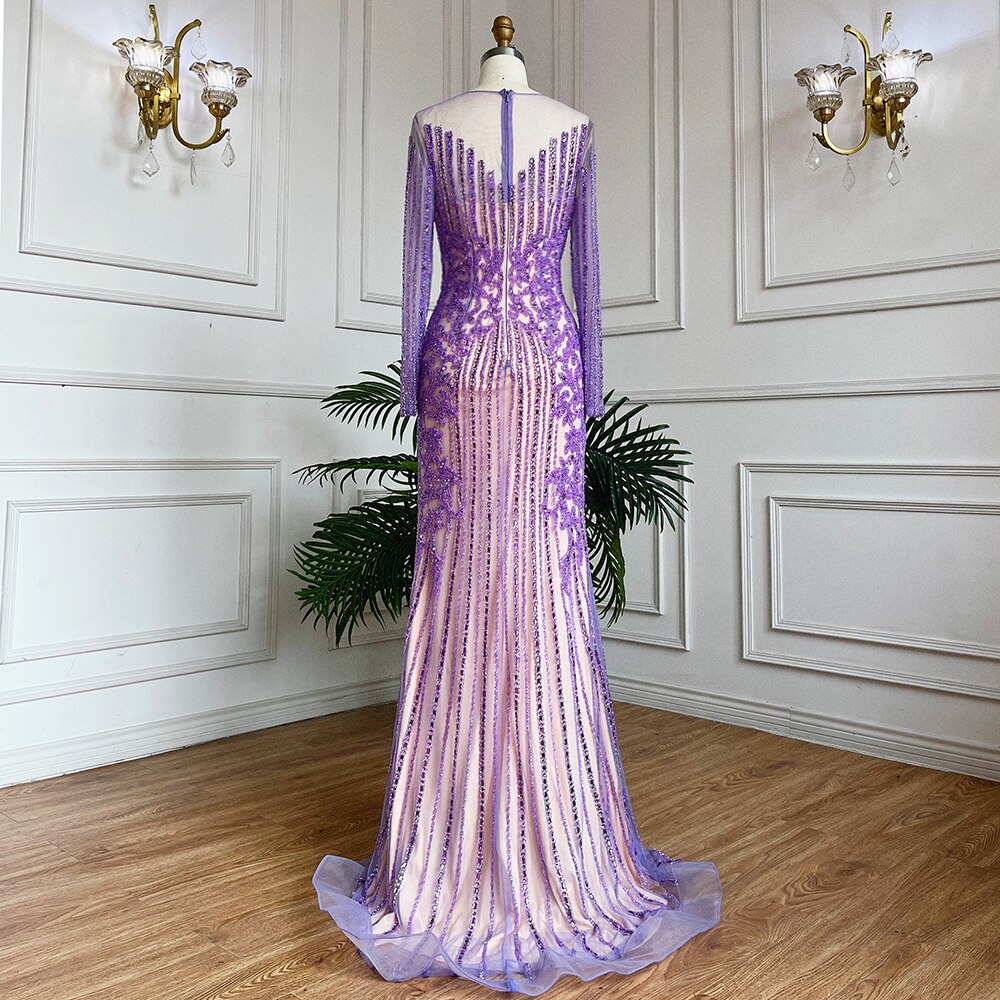 Muslim Lilac Mermaid Elegant Beaded Crystal Dubai Long Evening Dresses Gowns 2025 For Women Wedding Party LA71959