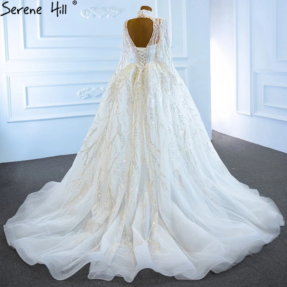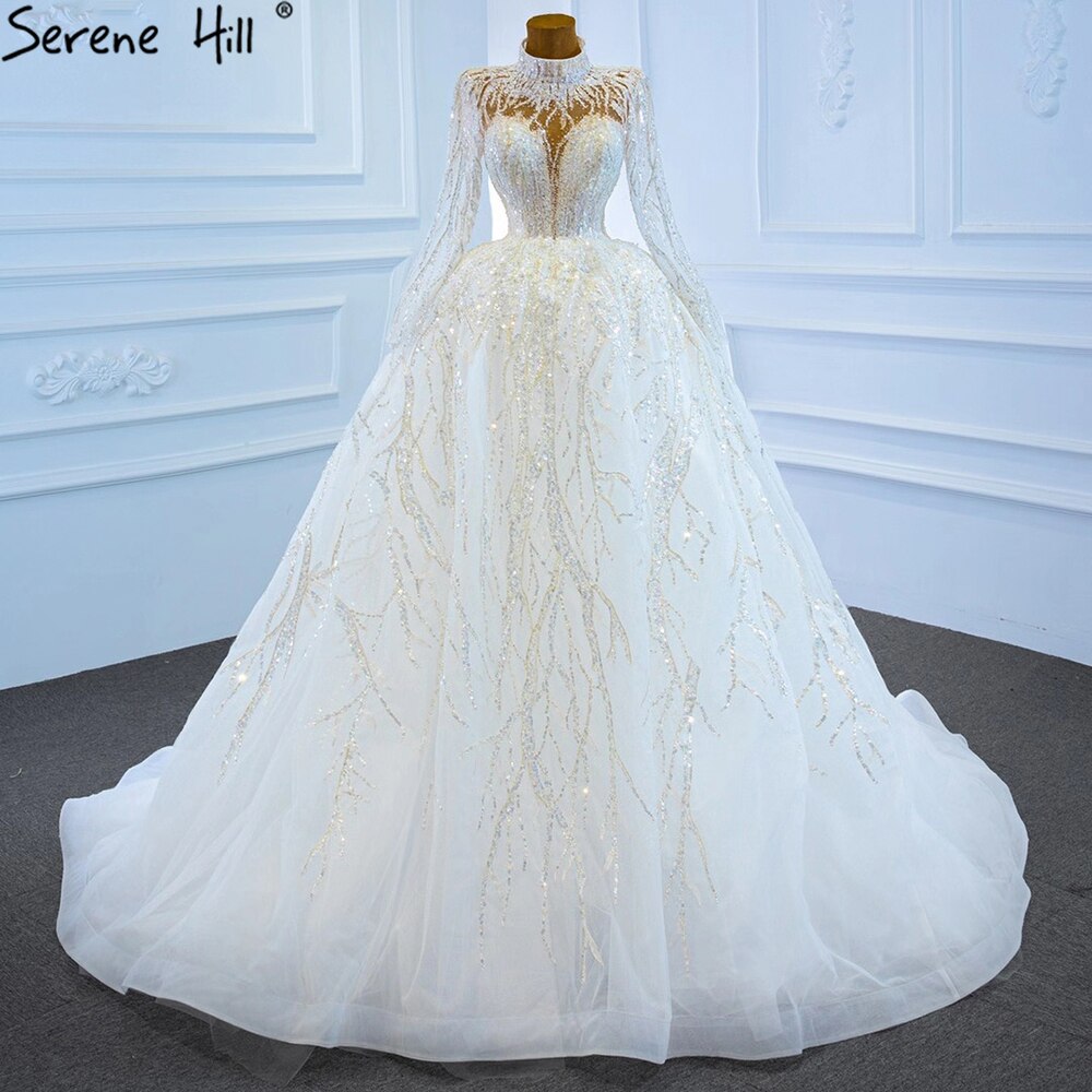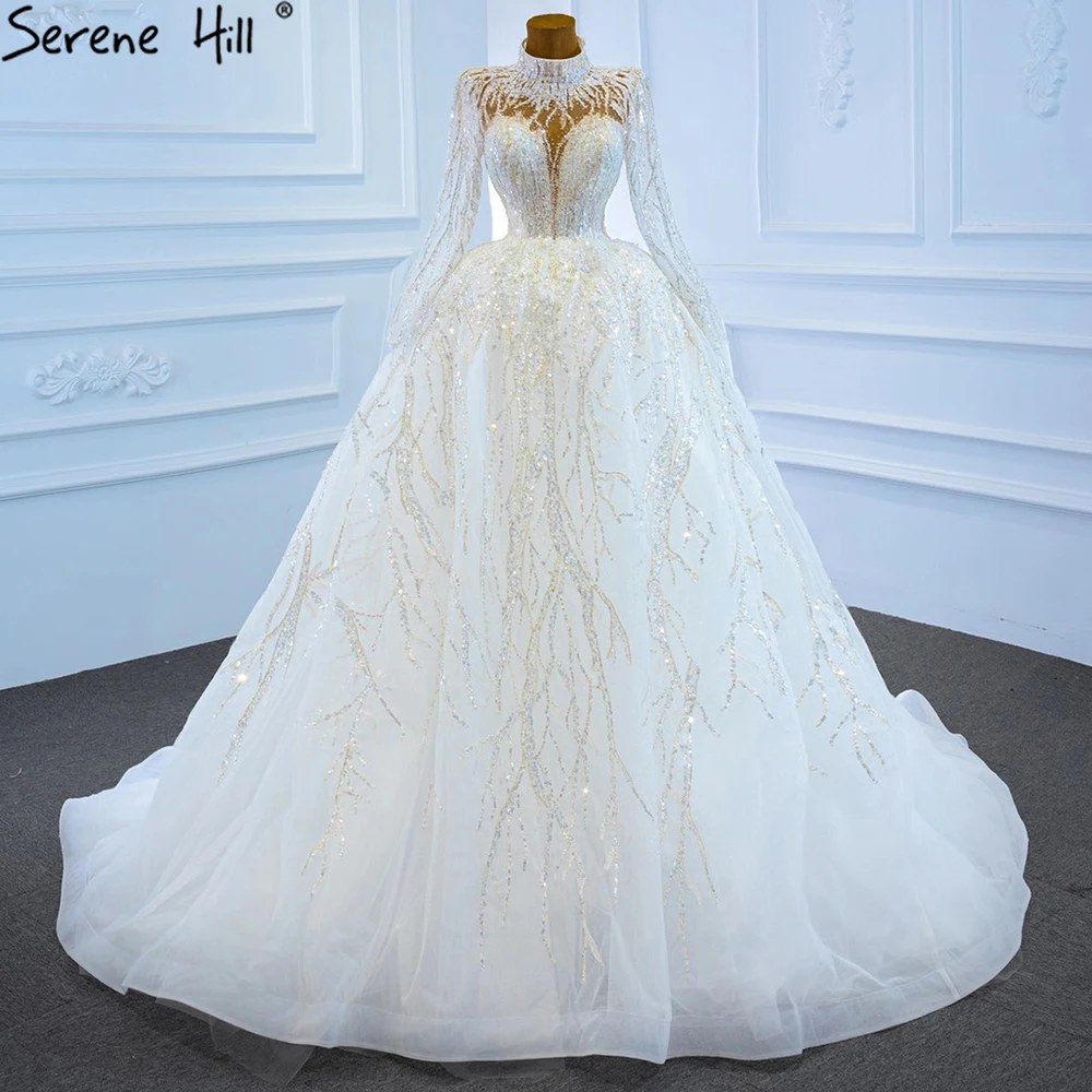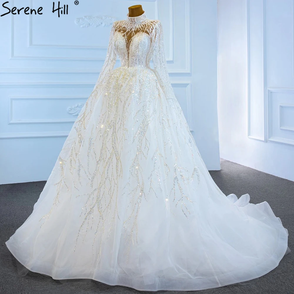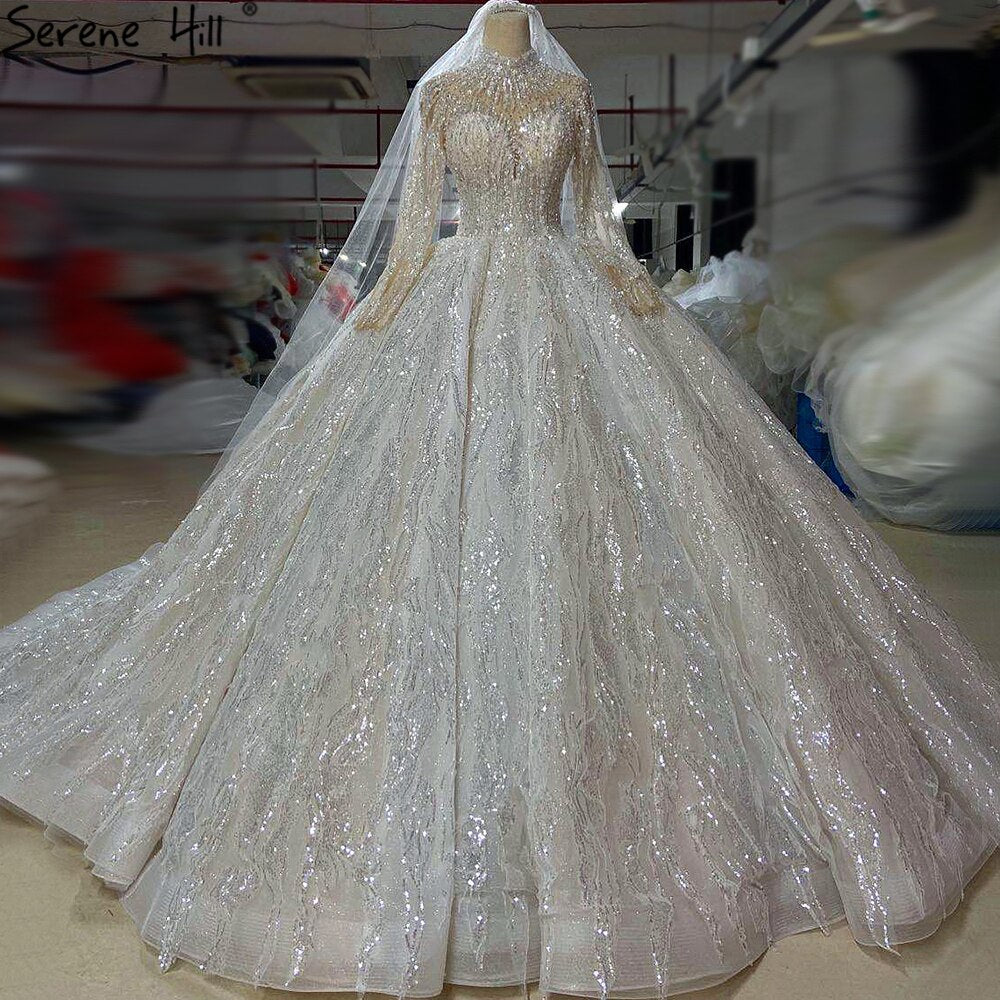 Muslim Luxury Ivory Wedding Dresses Gowns 2025 Crystal Beading Sexy Bride Dress HM67226 Custom Made